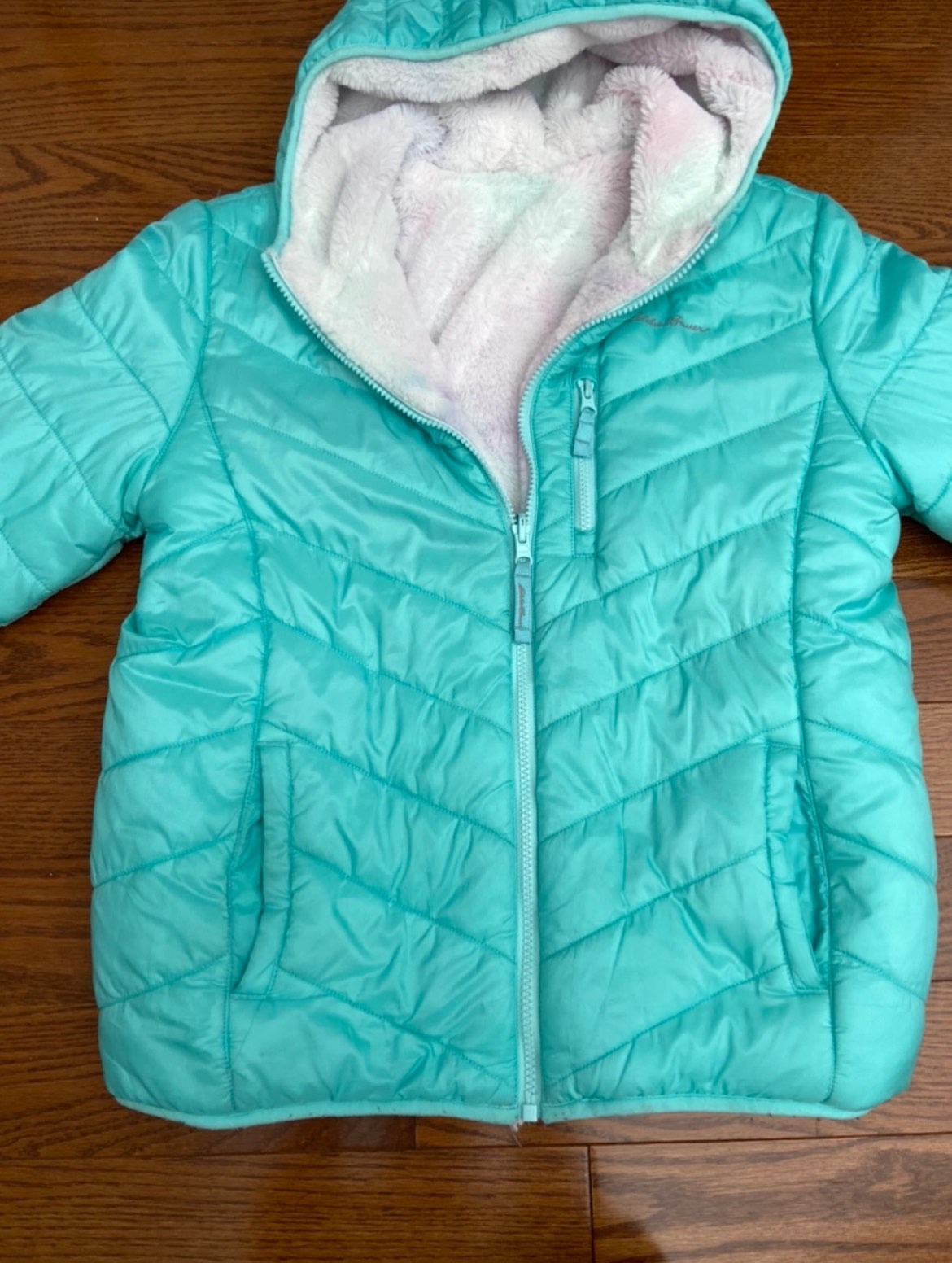 Smoke free pet free home Pick up only. Yonge & Steeles Item brought to driveway Purchased from Costco for $30 Worn for one season, excellent used condition One side turquoise, reversible side is soft fur, no stains rips etc.