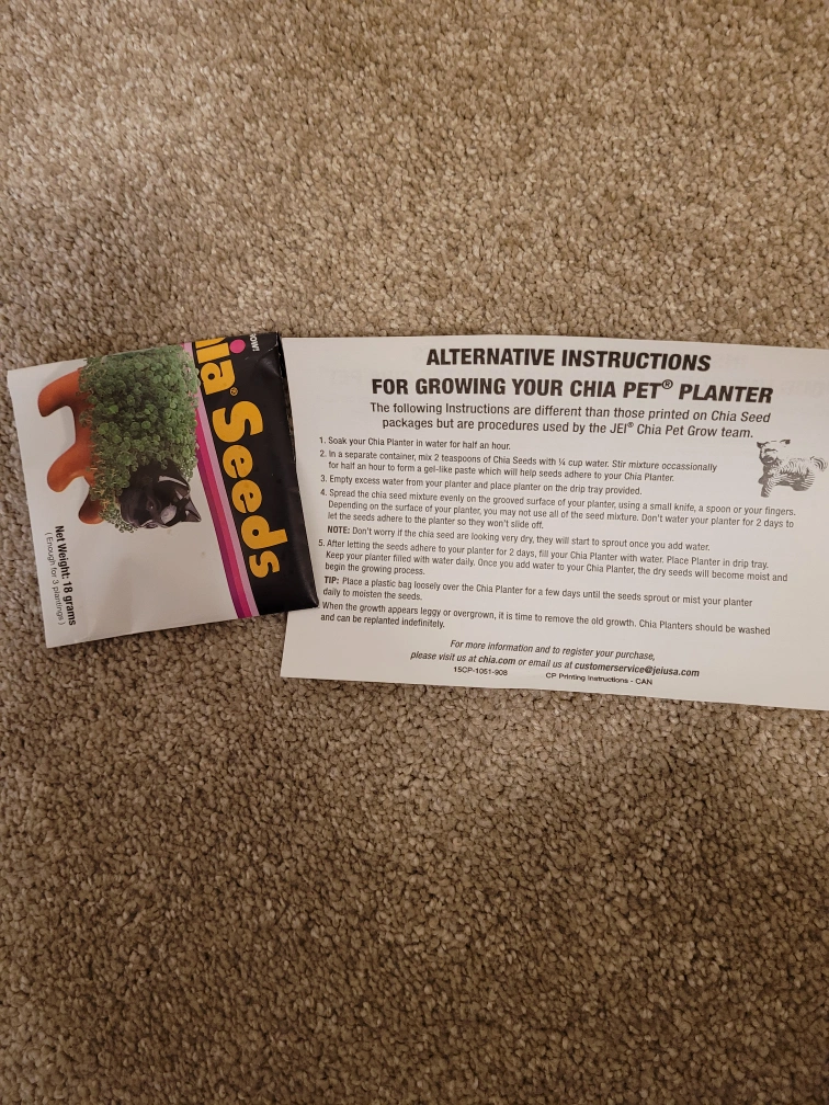 I've never been able to get it to grow very well, perhaps someone else will have better luck. About half a pack of seeds included along with original box, stickers, and watering tray. Might have better luck with new seeds.