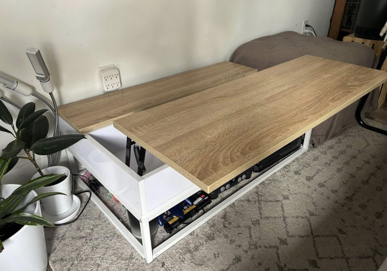 Gently used. Has a hidden compartment under the main table , and 2 slots to store stuff inside as well. Pick up around bay and Wellesley
