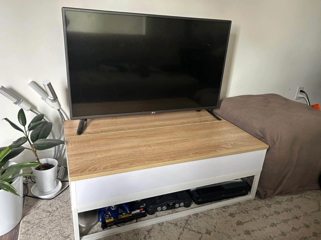 Gently used. Has a hidden compartment under the main table , and 2 slots to store stuff inside as well. Pick up around bay and Wellesley