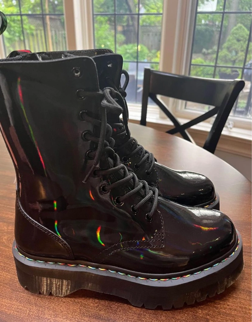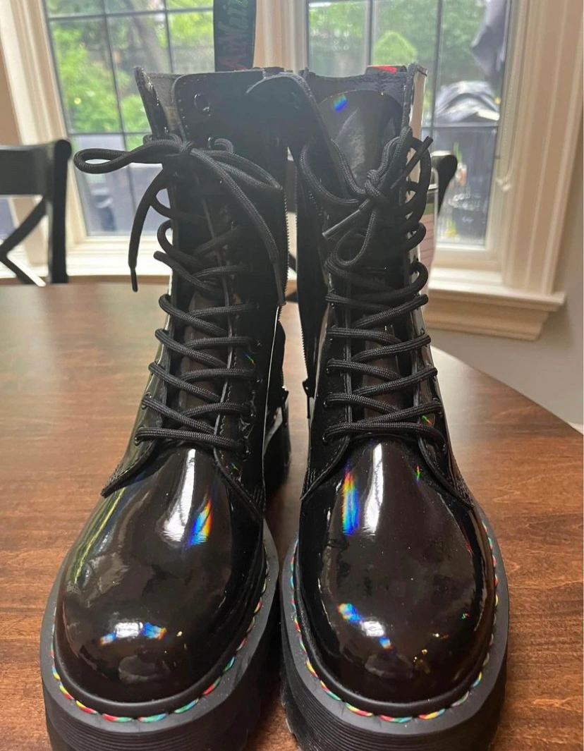 Brand new, never been worn. Limited edition Pride rainbow stiching! These are beauts but sadly not my size. 10 eye holes for laces. Side zipper.