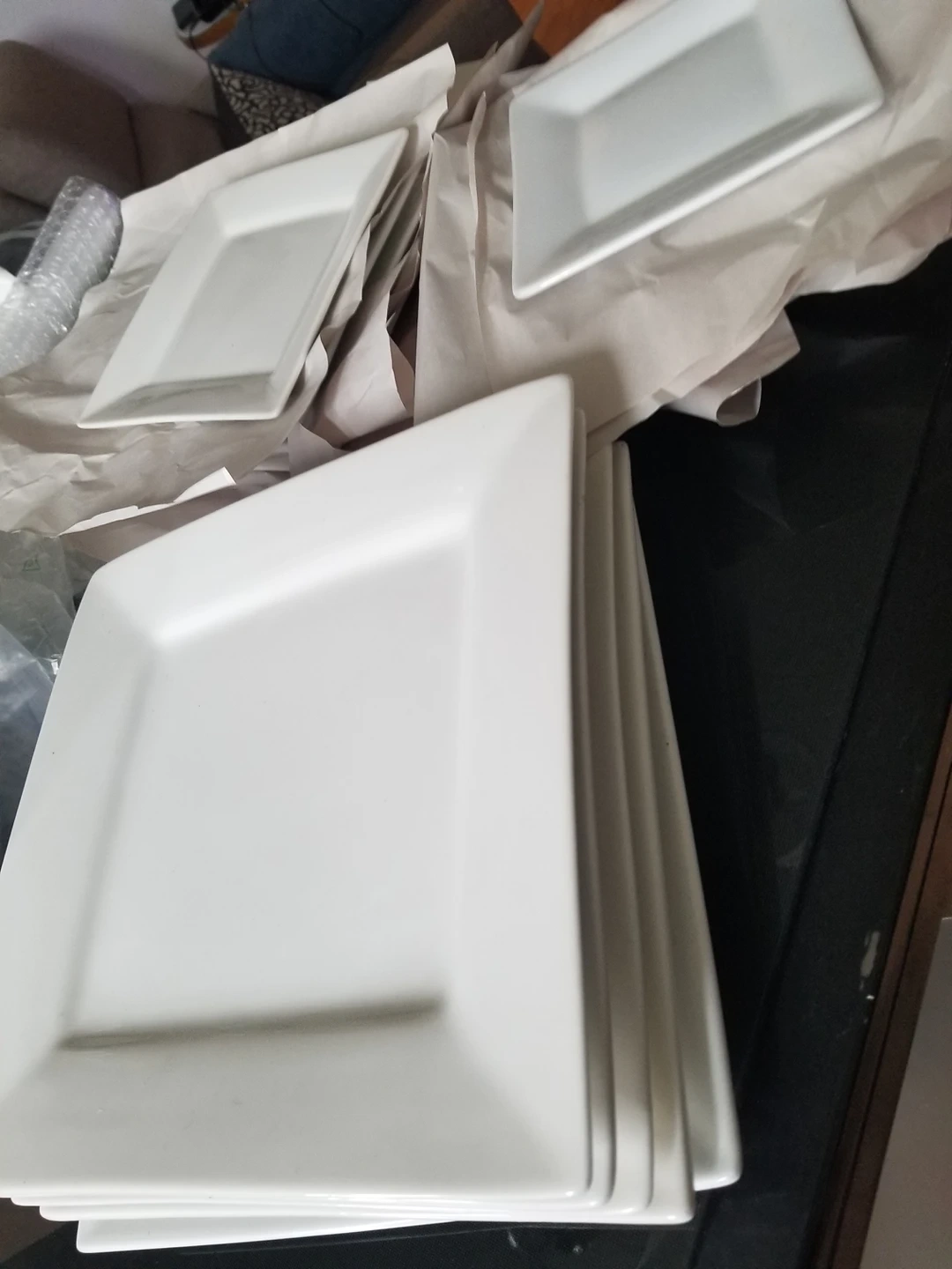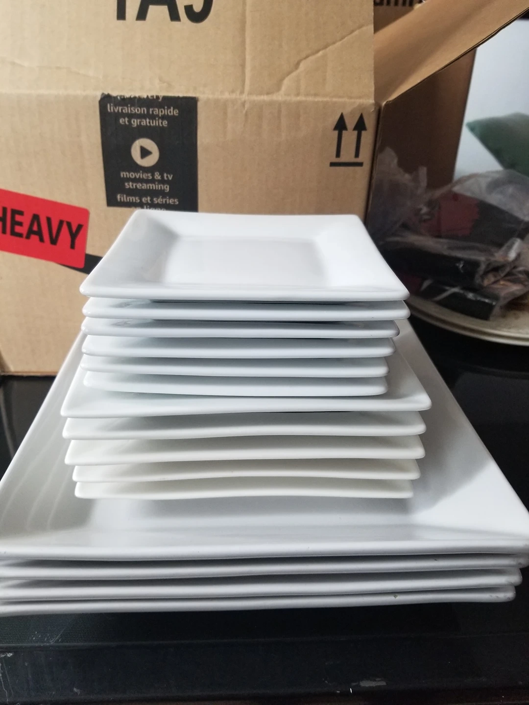 11 square dinner plates (5 and 6), 6 bread plates and 5 salad plates. Inherited some china and opted to go classic.