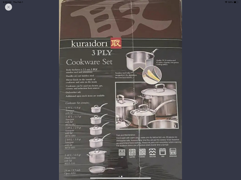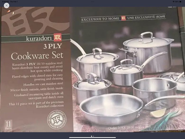 BRAND NEW in box with plastic - Kuraidori 3 PLY Cookware Set - Stainless Steel - Dishwasher Safe