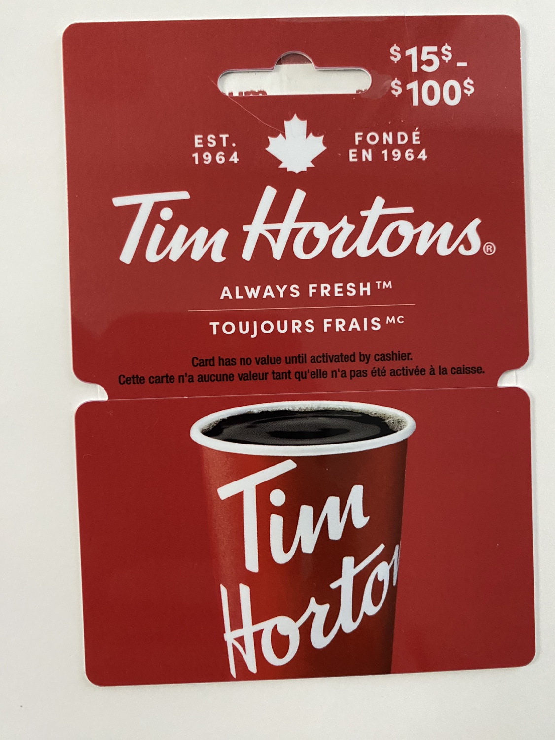 1 / 11 / 1Buy & SellTim Hortons Gift Card ($15 Value)Tim Hortons Gift Card ($15 Value)$10$15 Gift Card for $10. Meet at Tim Hortons Yonge and Front to confirm balance.WHERE TO MEETTim Hortons @ Brookfield PlaceView MapSELLERIzabellaOld Toronto22818 reviews1 chats·2 favorites·39 viewsSEND CHAT TO SELLERHi Izabella! I’m interested in your listing.Hi Izabella! I’m interested in your listing.Get the Karrot app to chatSign In to chat