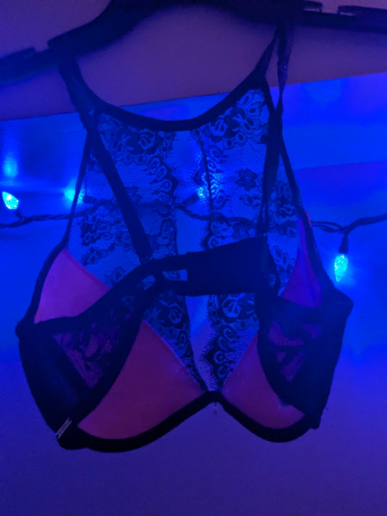 Alluring & Seductive, Coral Pink, Black Lace Bra. Unique Find. Doesn't Fit Me :(.