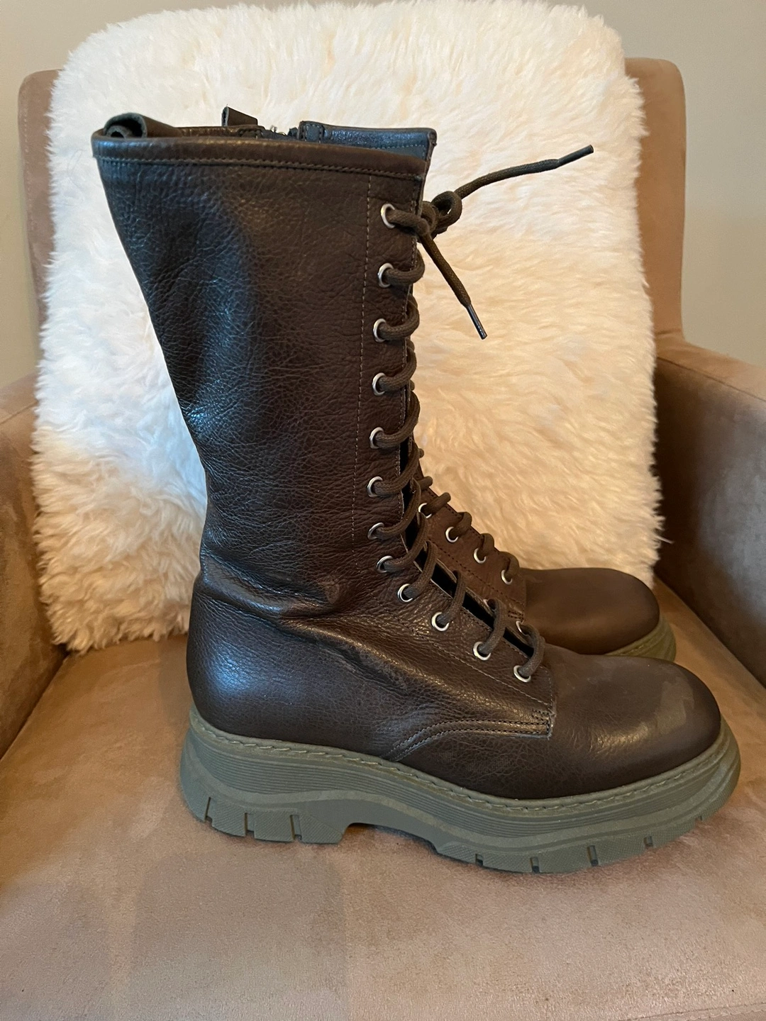 Brand new leather boots - made in Spain - khaki/brown - size EUR 38 or US 7.5