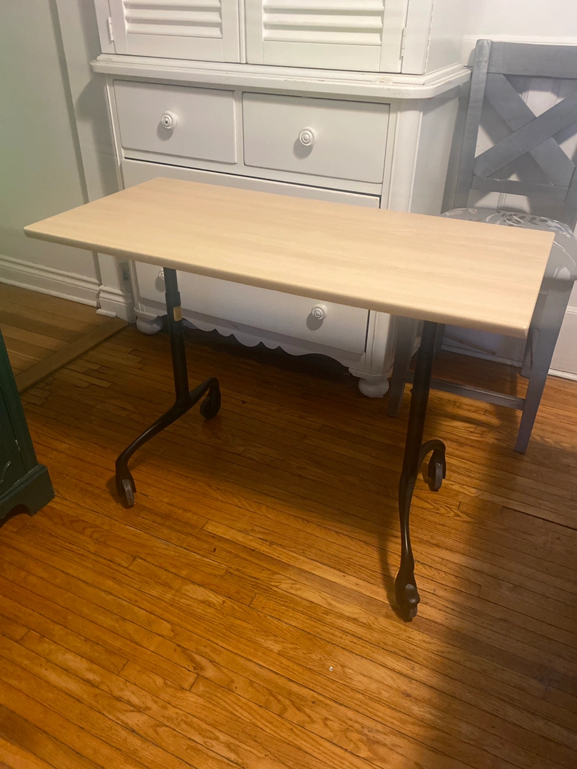 like new little desk with solid wood it has wheels and you can adjust the high.