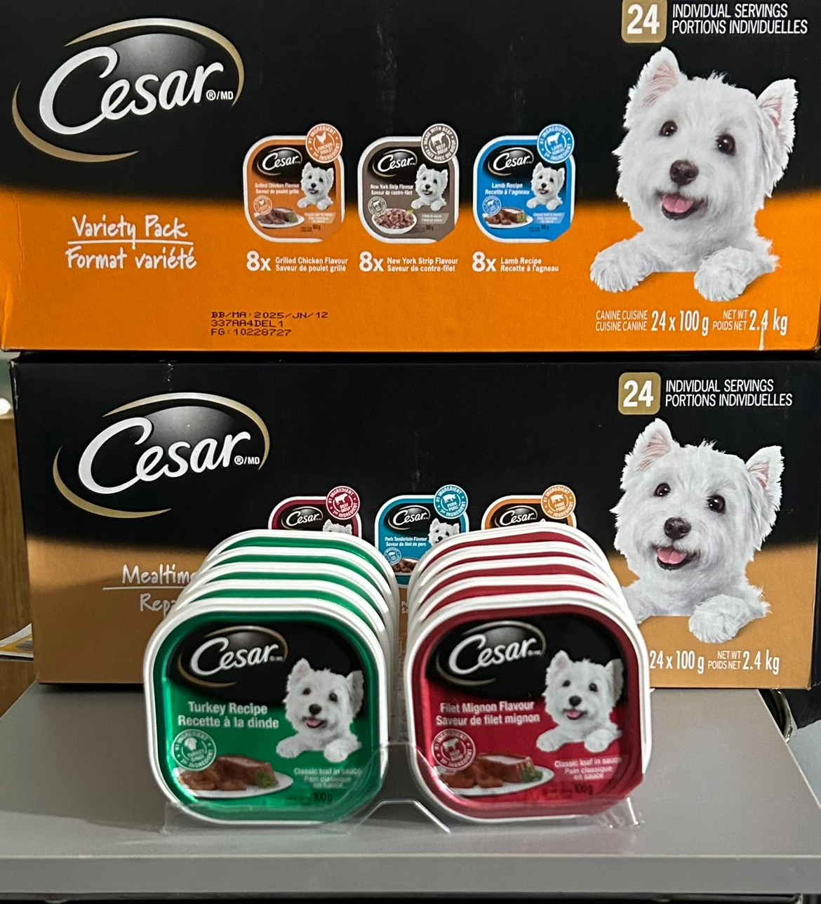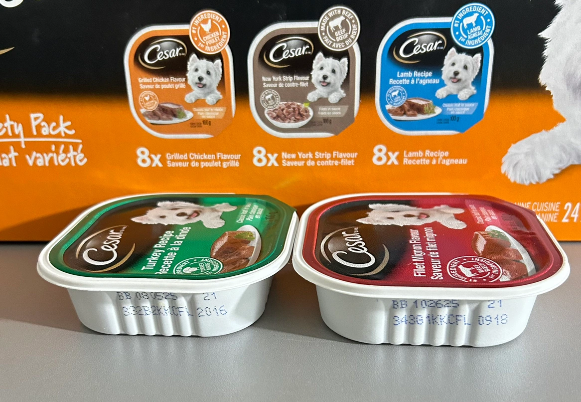 Five pieces of Turkey ($7.50) and five pieces of Filet Mignon Flavour ($7.50) classic loaf in sauce. Buy in five or 10. Expiration for Turkey is Aug. 5, 2025 while Filet Mignon is Oct. 26, 2025. No low ball.