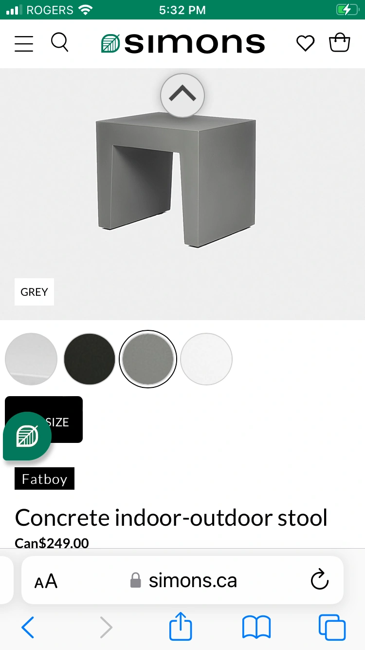 Concrete looking (but very lightweight) stool or side table by FATBOY. Modern and chic looking and can be used indoors or outdoors.