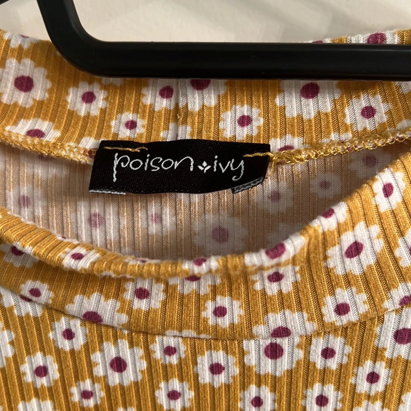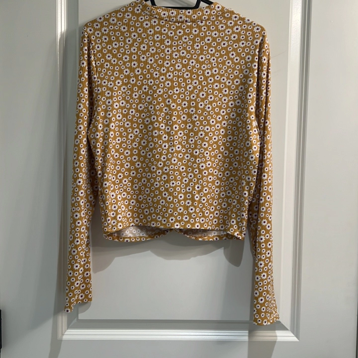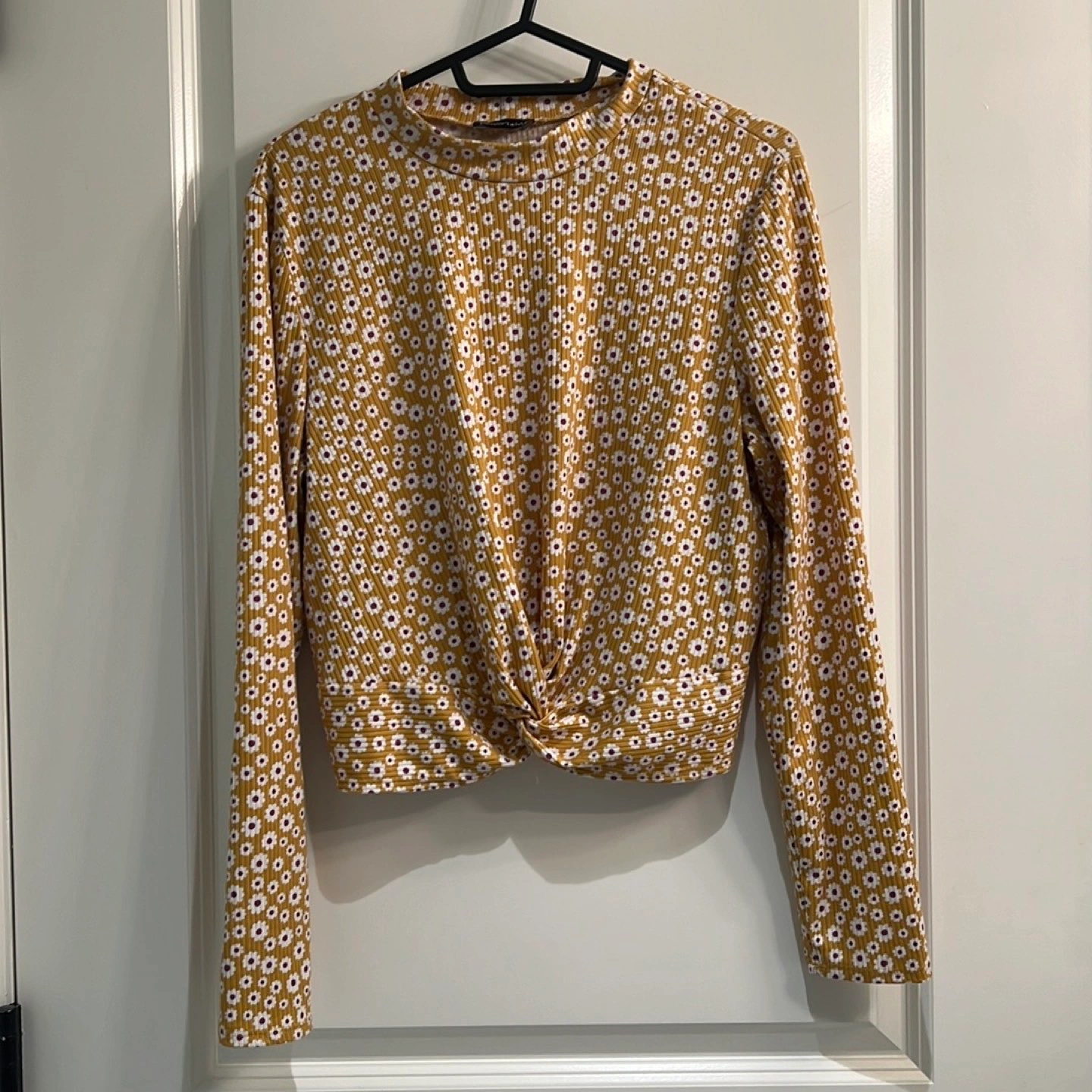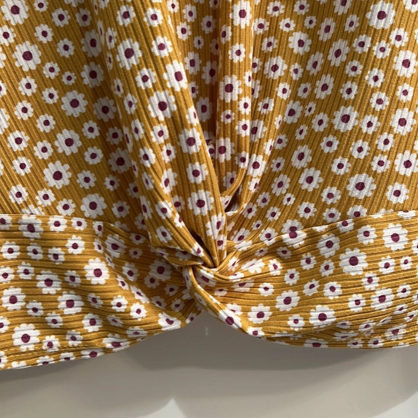 Poison Ivy Ribbed Yellow Floral Print Twisted Long Sleeve Blouse