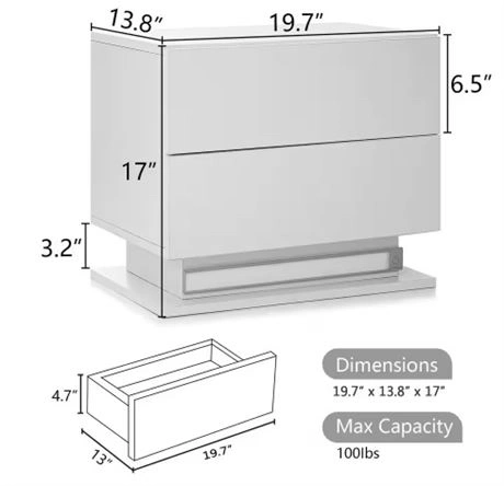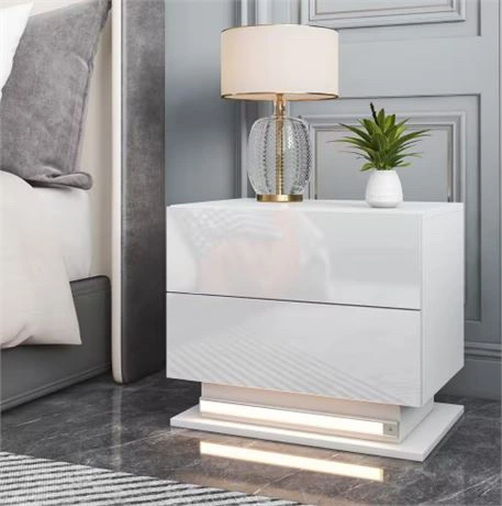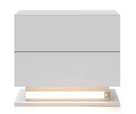 Modern LED 2-Drawer White Nightstand