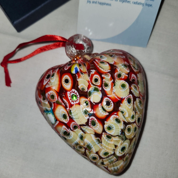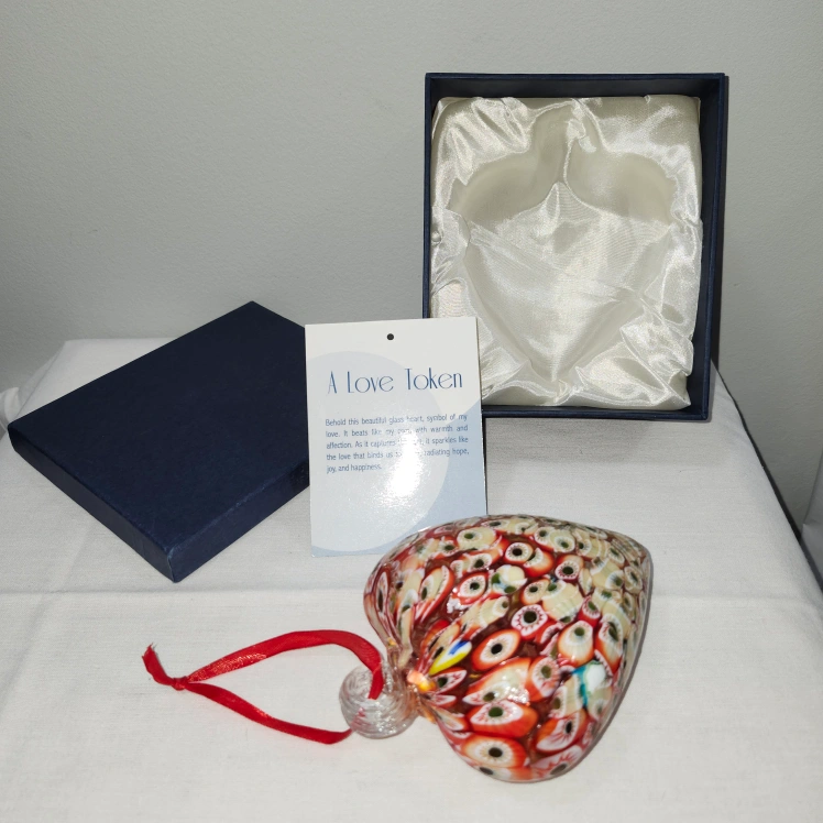 *MILLIFIORI Glass HEART with Red Ribbon VALENTINES GIFT. ❤️❤️