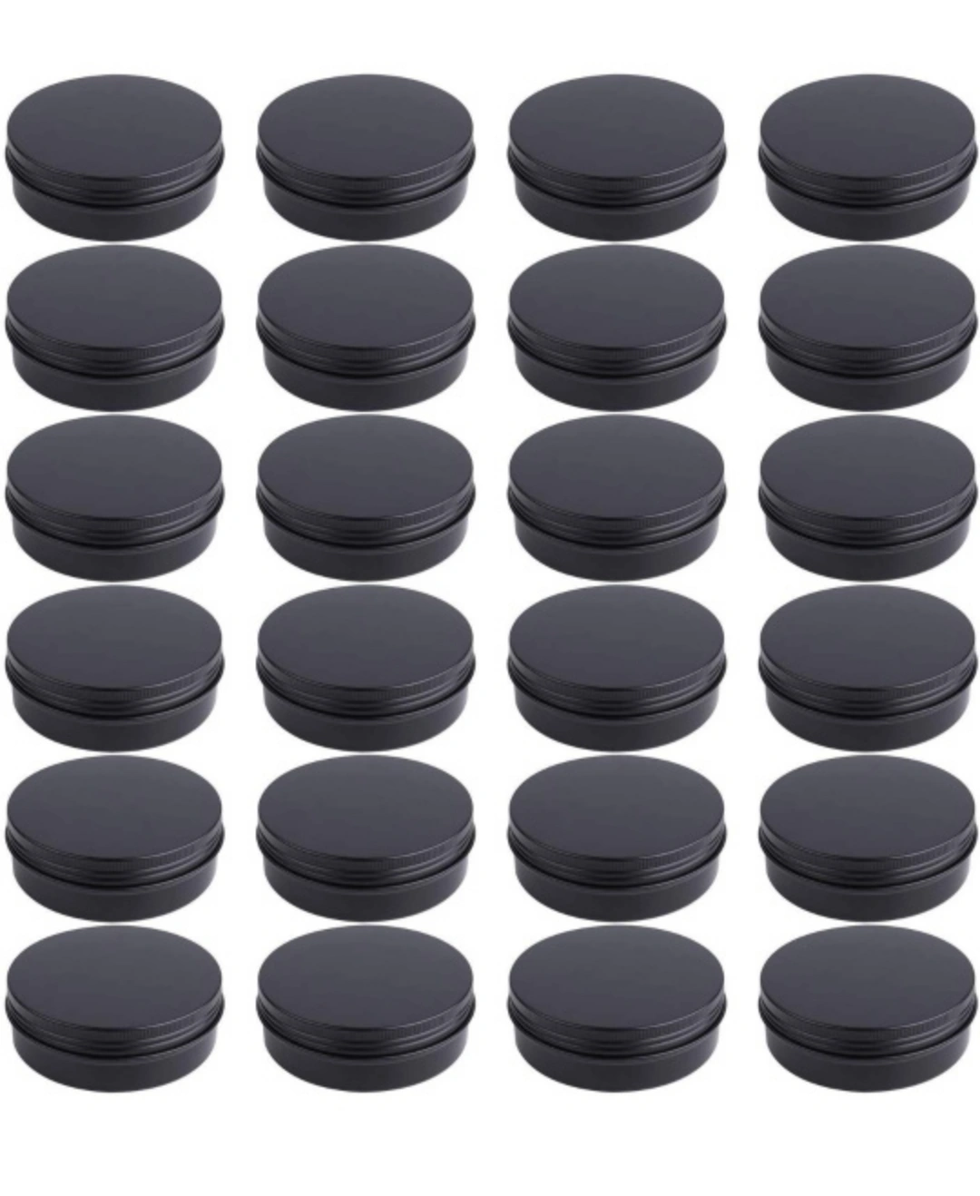 Dimentions: the screw cans is 3.26 inch/ 8.3 cm in outside diameter and 1.49 inch/ 3.8 cm in outside depth; Color: Black
