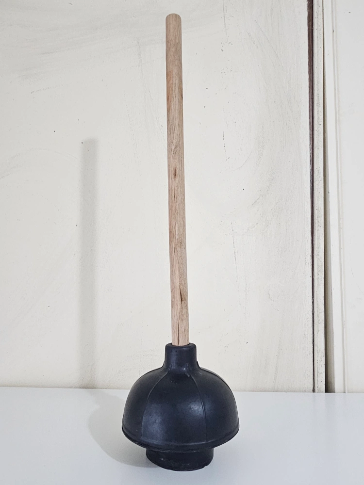 Selling toilet plunger. Handle is wood and head is rubber. Does what it is meant to do.