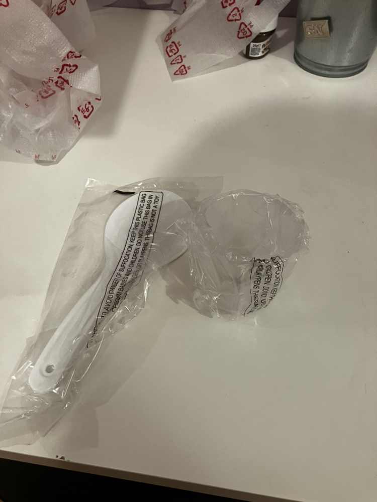 Rice measuring cup and spoon is sealed in the package and all box and inner package still in sealed condition