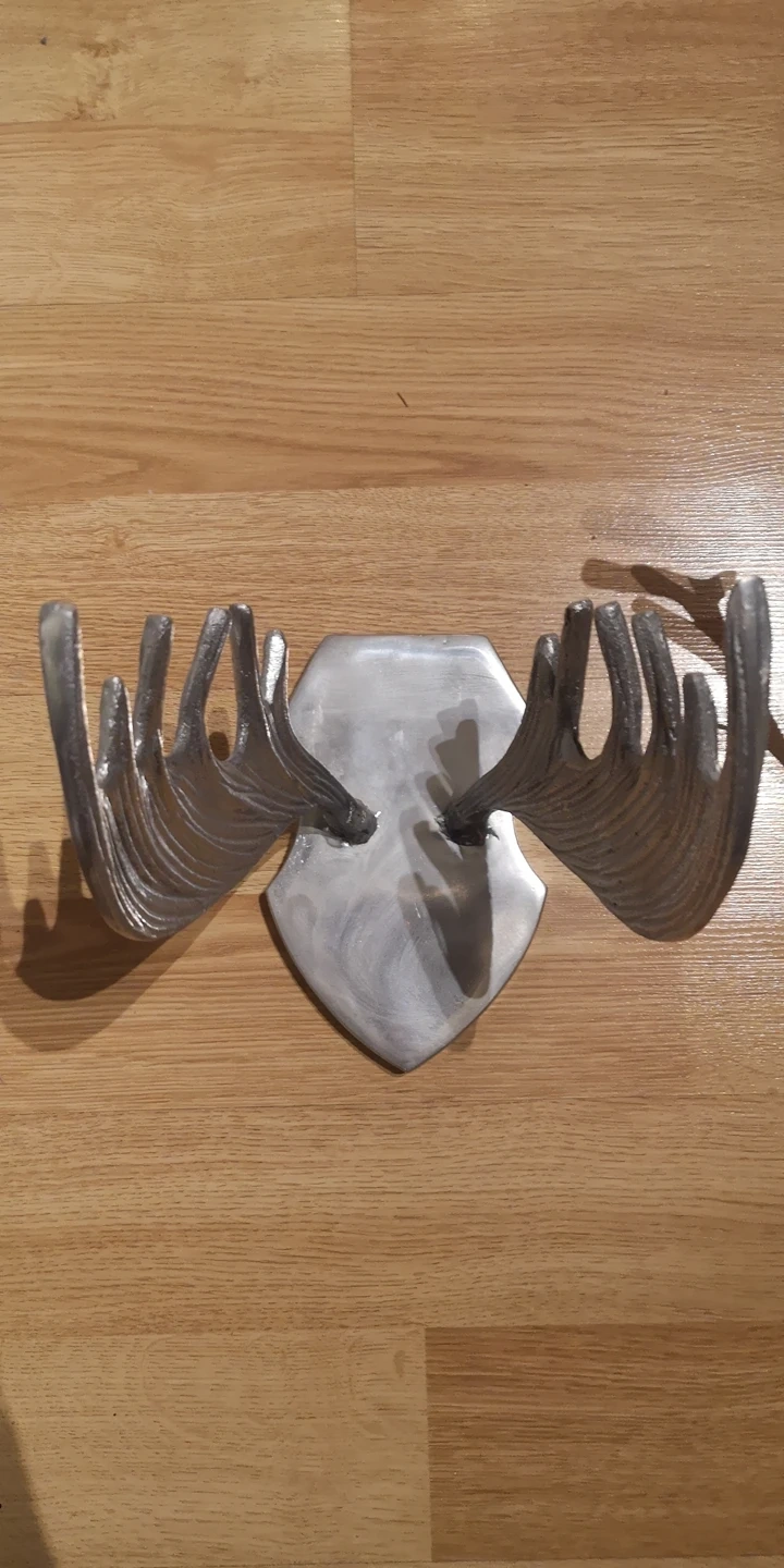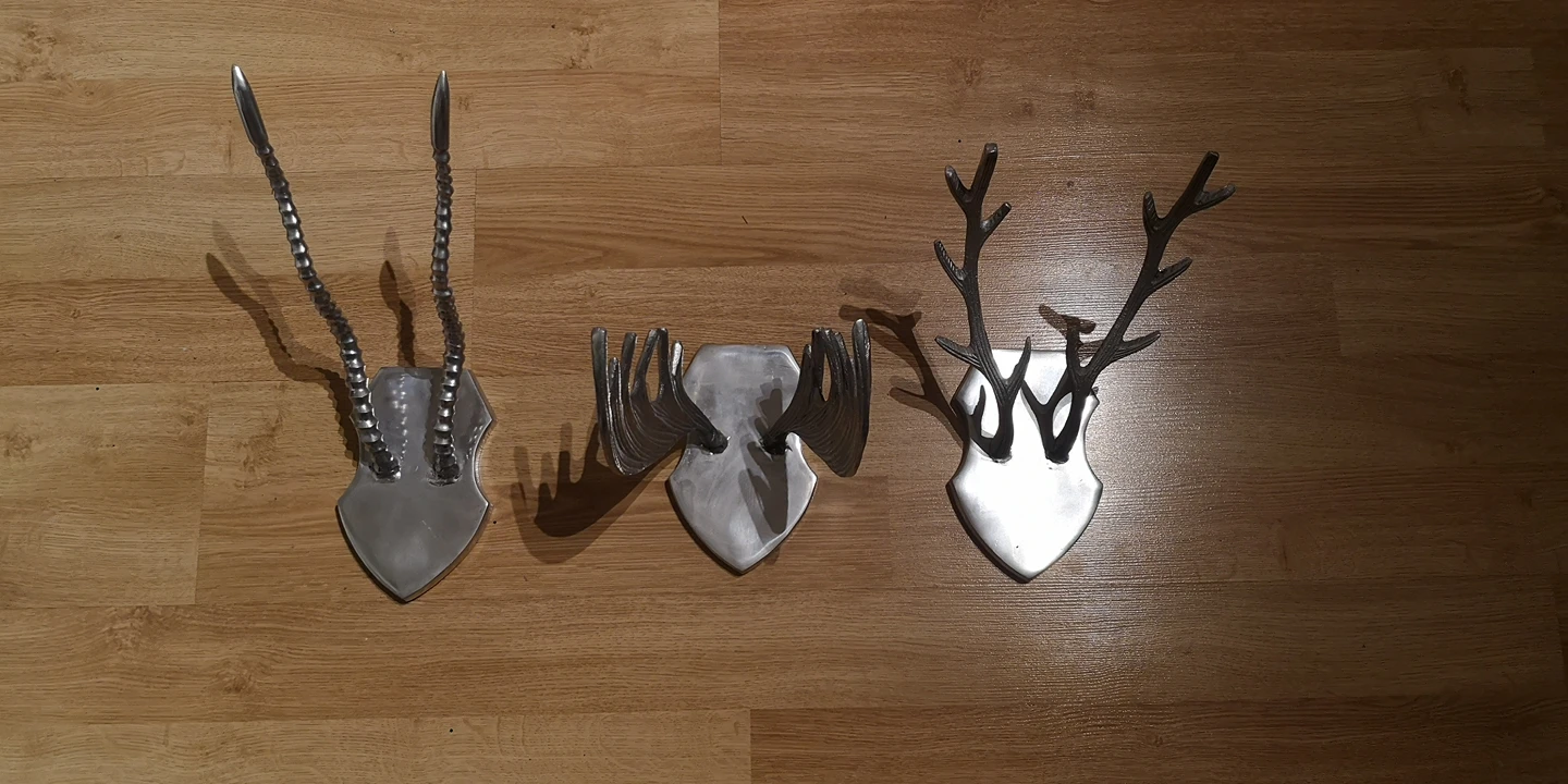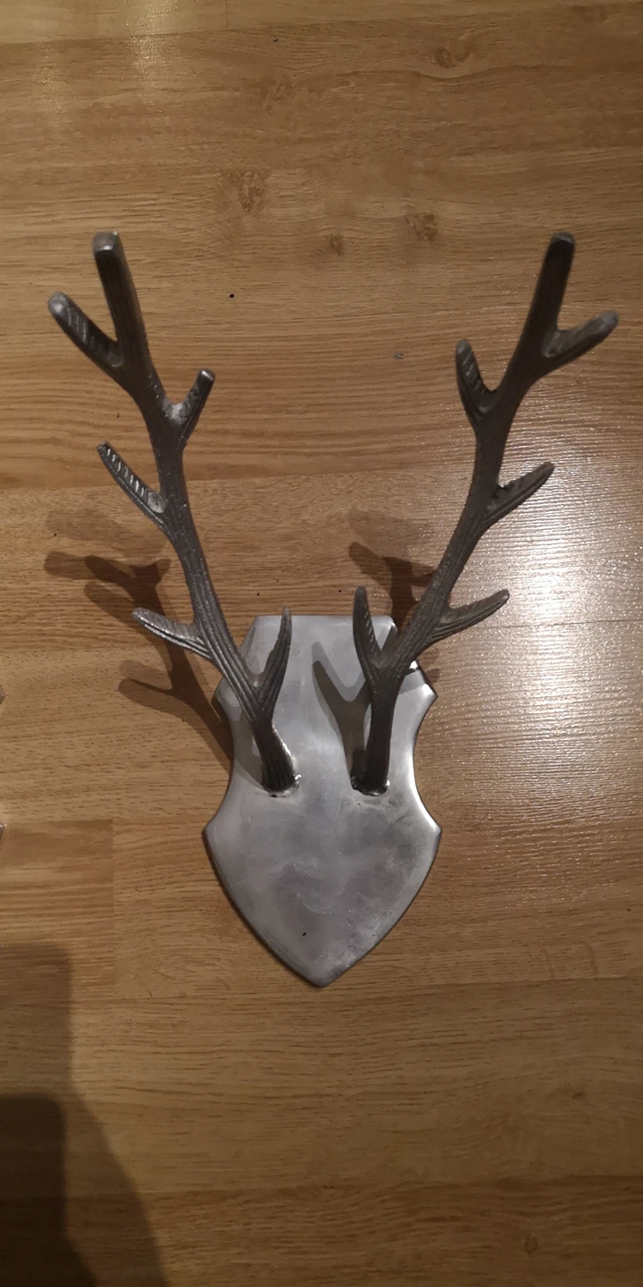 Set of 3 decorative hanging antlers in silver metal (heavy)