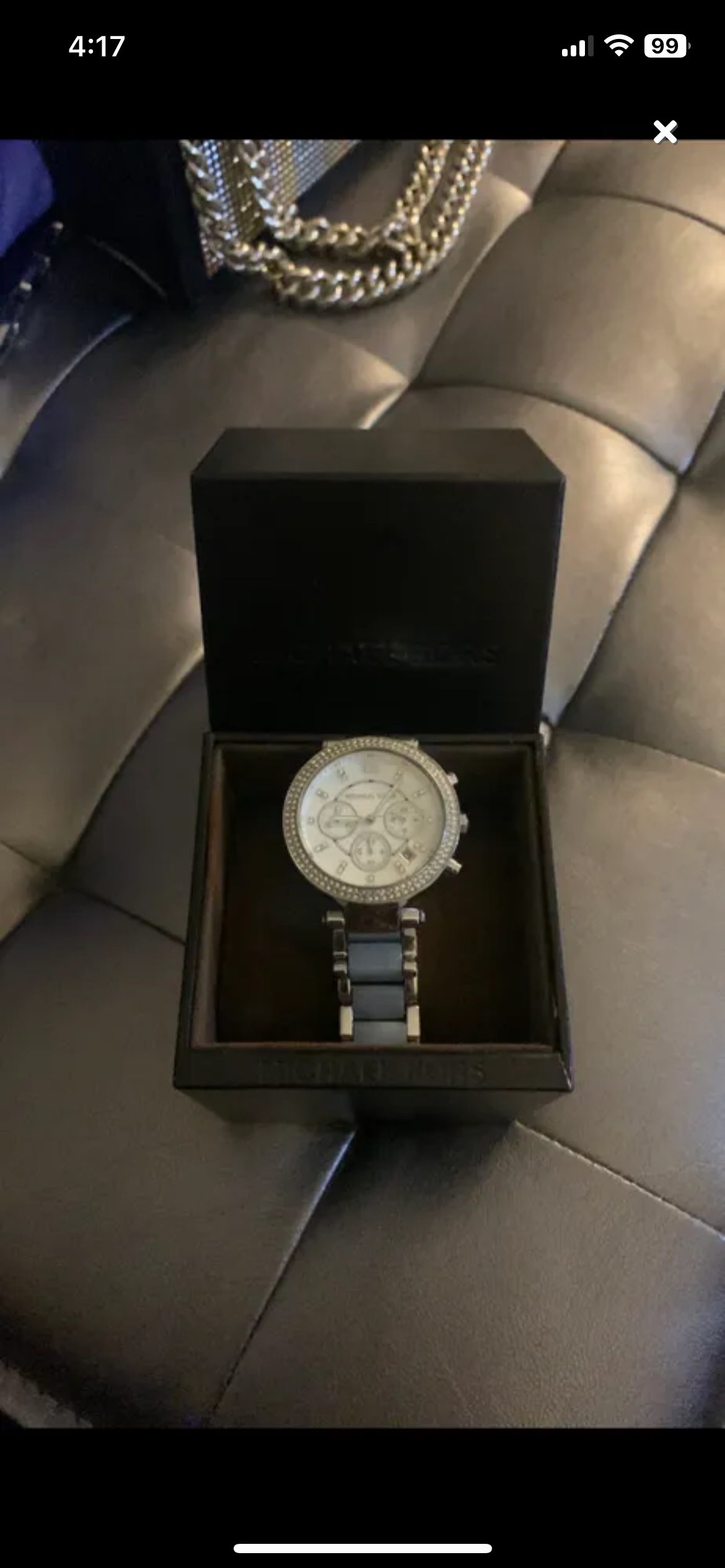 Buy & SellMichael Kors WatchMichael Kors Watch$60In perfect condition, just needs a new battery. Gorgeous steel blue colorConditionLike newBrandMichael KorsWHERE TO MEETJane Street & Sheppard Avenue WestView MapSELLERverifiedAlisaJane Heights17811 reviews4 chats·2 favorites·191 viewsSEND CHAT TO SELLERHi Alisa! I’m interested in your listing.Hi Alisa! I’m interested in your listing.Get the Karrot app to chatSign In to chat
