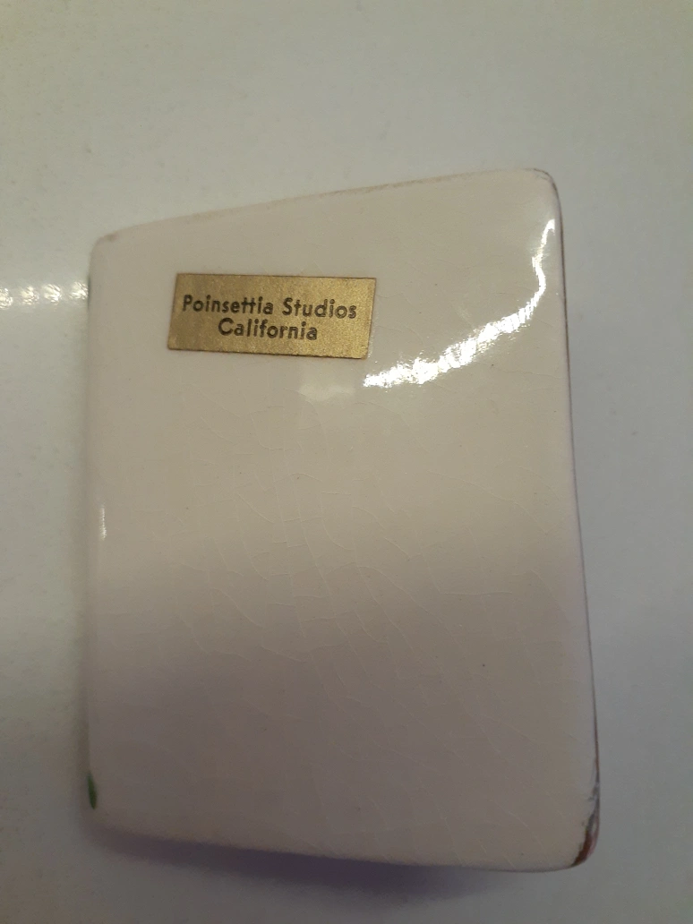 By Poinsettia Studios of California. Crackle finish overall. 2.5” tall