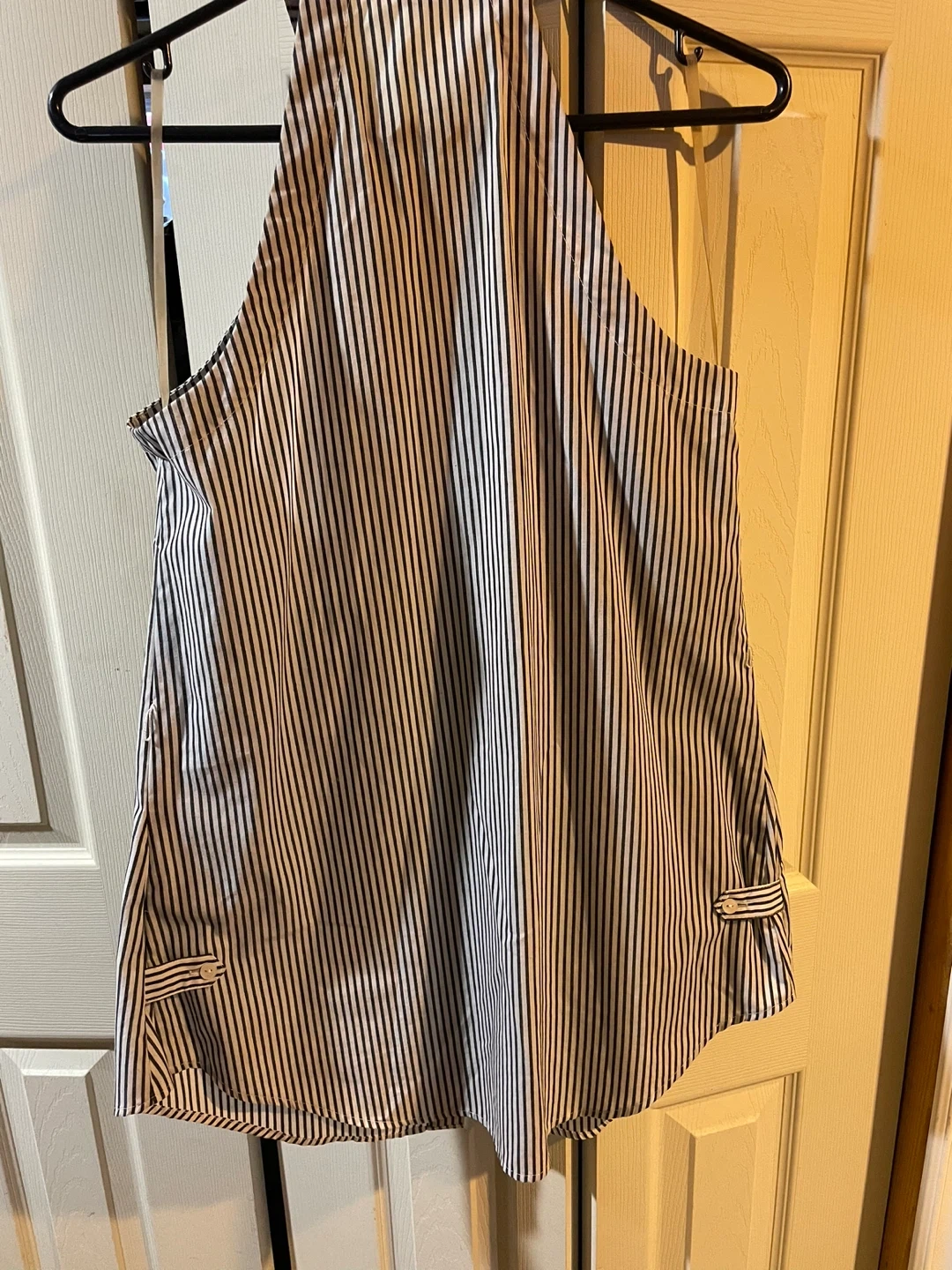 Striped sleeveless blouse from Twenty Two. Features a halter neckline with button-up front and ruffled detailing. Made with a lightweight fabric for comfort. This top is great for dressing up or down!