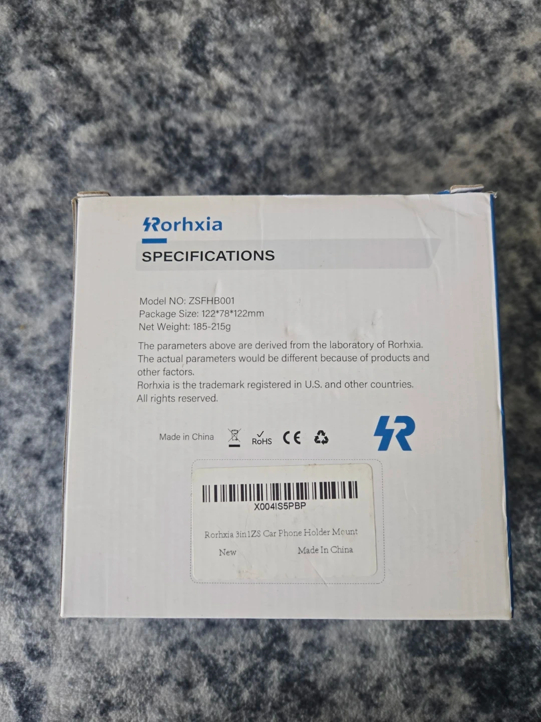 This is a Rorhxia car phone holder mount. It offers strong quality and 360° rotation. Package size is 122*78*122mm.