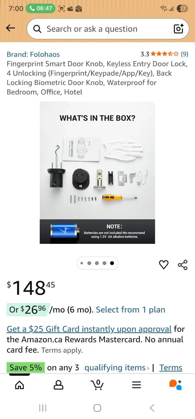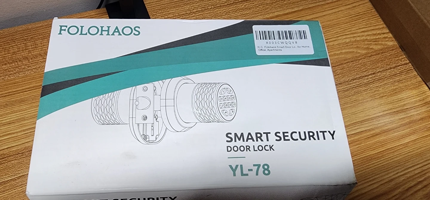 This is a FOLOHAS YL-78 series smart security door lock. It offers keyless entry and biometric fingerprint access. Included are installation instructions and mounting hardware.