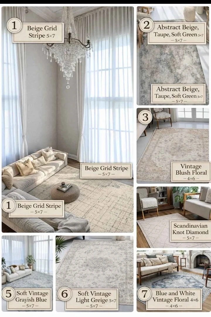 These washable rugs have a rubber backing and come in either 5x7 or 4x6, depending on what the ad is showing. Selection is limited to whatever I've got left in stock.