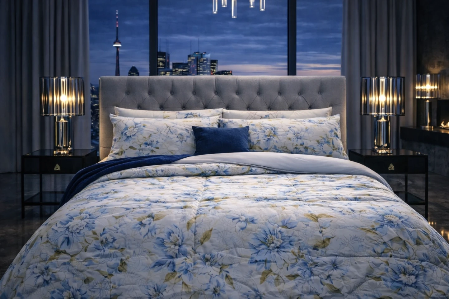 The soft white base with muted blue and gray botanical patterns is giving cottage-core Nana energy in the coolest way possible!