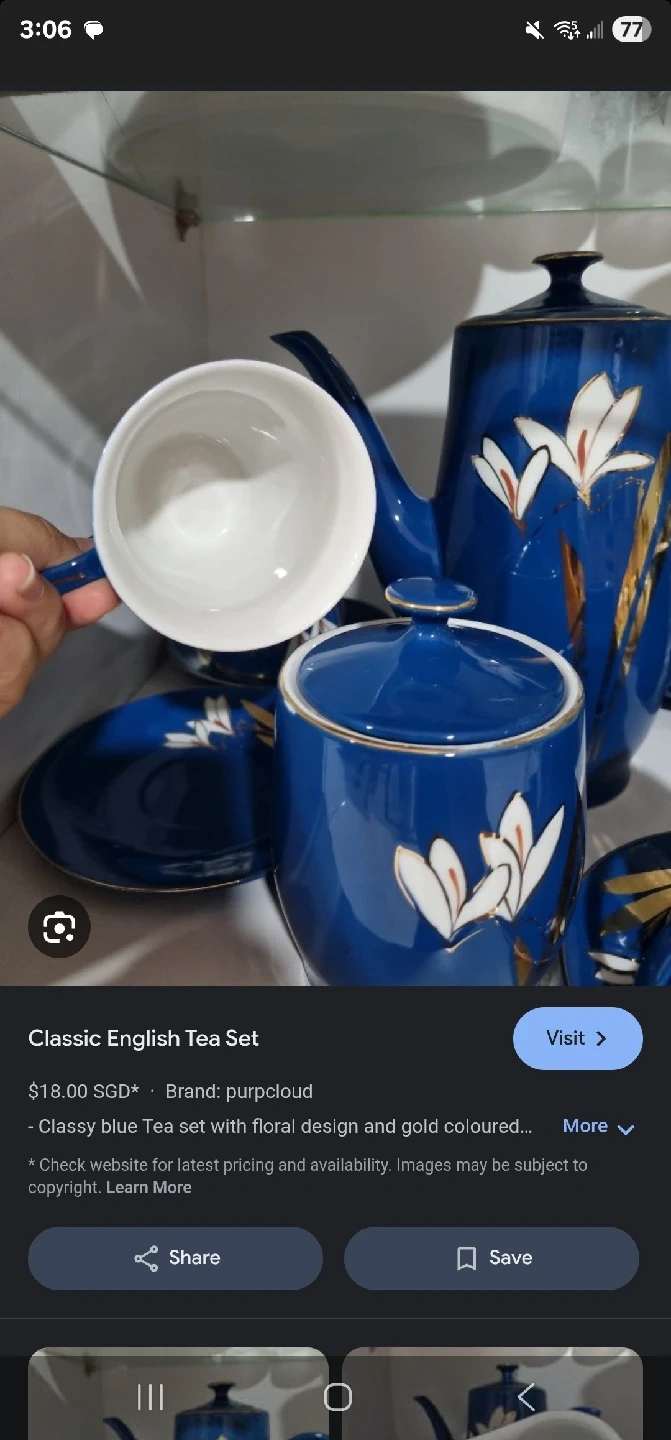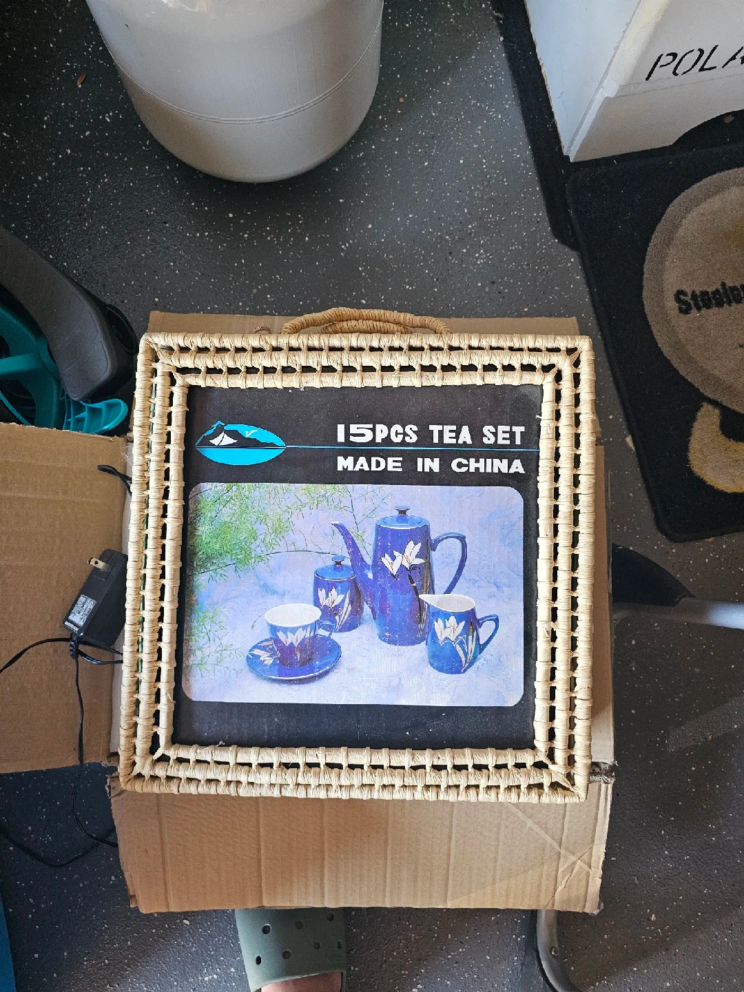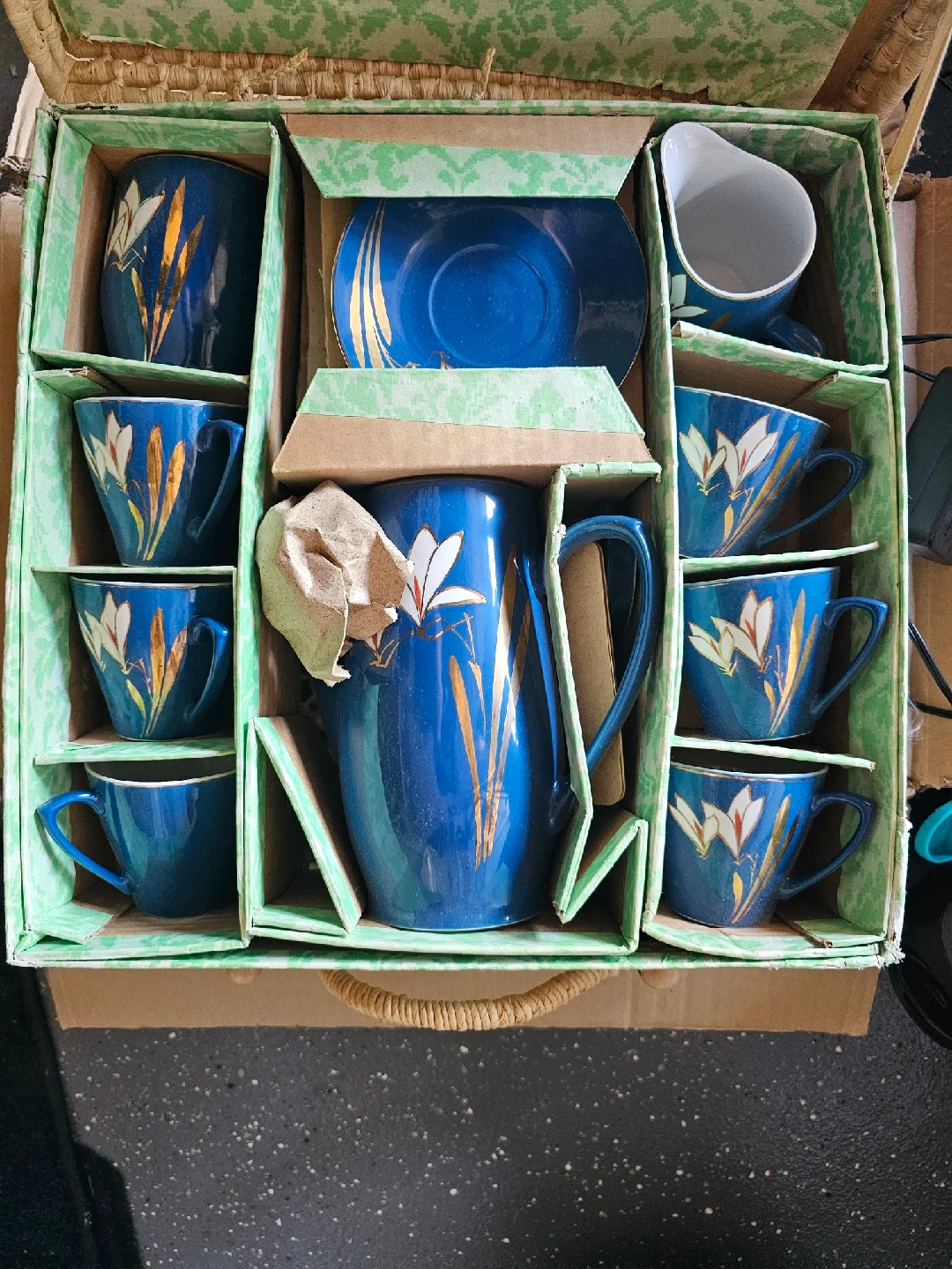 70Selling a lovely 15-piece tea set. It features a beautiful blue colour with a delicate floral design. Comes in its original box, perfect for gifting or adding a touch of elegance to your tea time