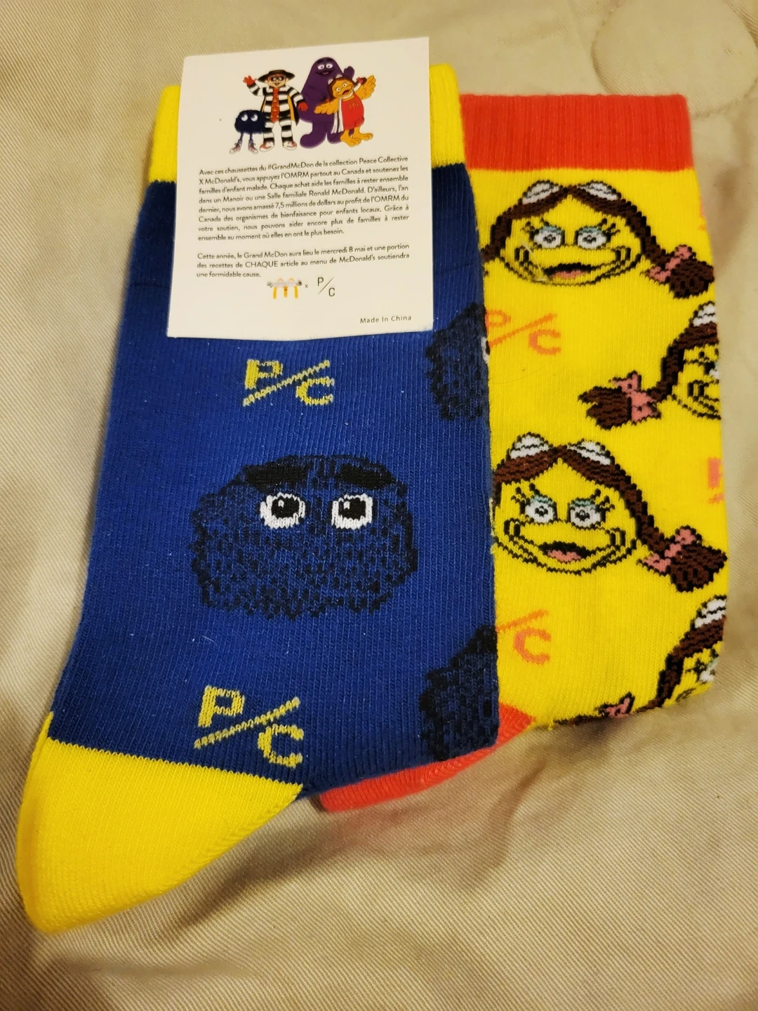 These socks are part of the Peace Collective X McDonald's collection. They feature fun character designs.