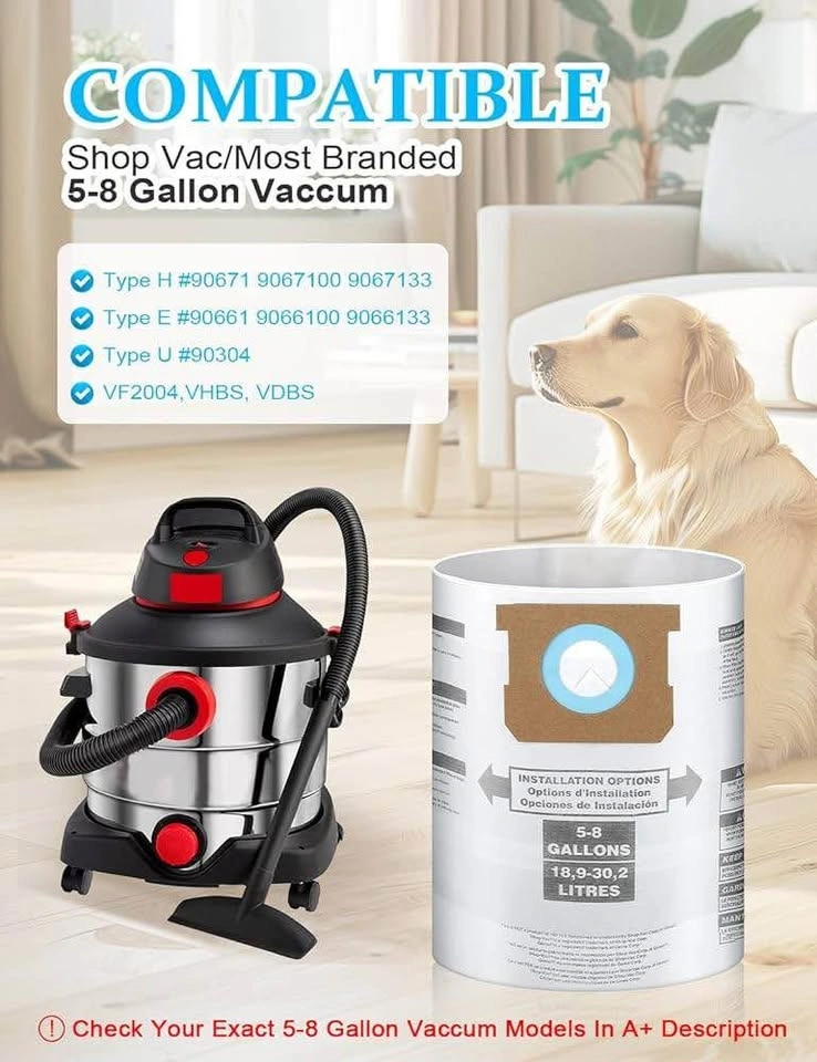16 PACK Vacuum Bags Compatible with Shop Vac 5-8 Gallon Dust Collection Bag Type H Double Layer 15/16 bags are new. 1 bag had been opened, but not used. Unfortunately not compatible with my vacuum. Originally purchased for $40 #102 Pickup near 10800 Bayview Avenue, Richmond Hill