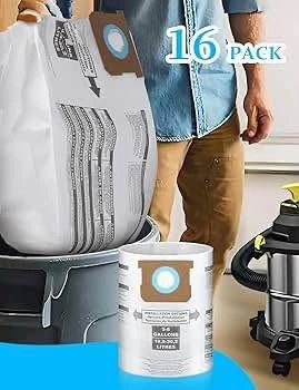 16 PACK Vacuum Bags Compatible with Shop Vac 5-8 Gallon