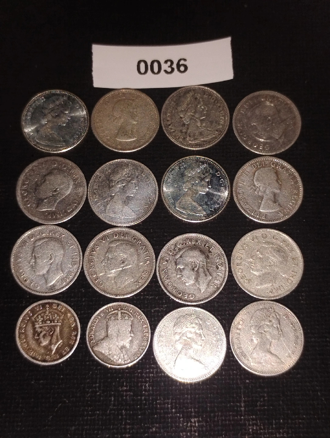 16 pieces Vintage Silver Canadian 5 Cent Coins - 1915-1920