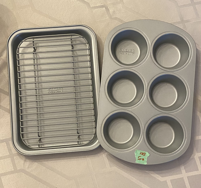 2203-piece toaster oven set. Includes a baking sheet, rack, and 6 muffin rack.