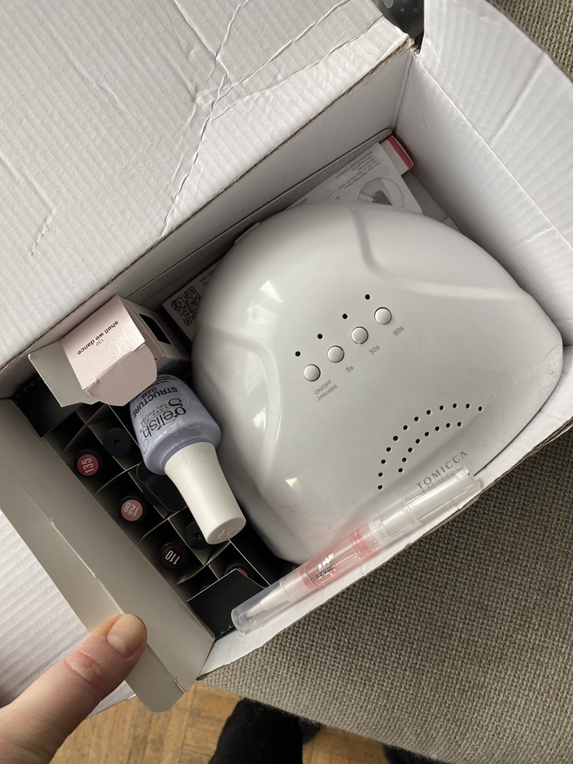 Kit comes with a handful of colours, LED light, and some random accessories; I also bought the sally hanson nail polish and the Gelish builder gel separately (I think it was like $20 on Amazon). I tried it twice, but it’s not for me.