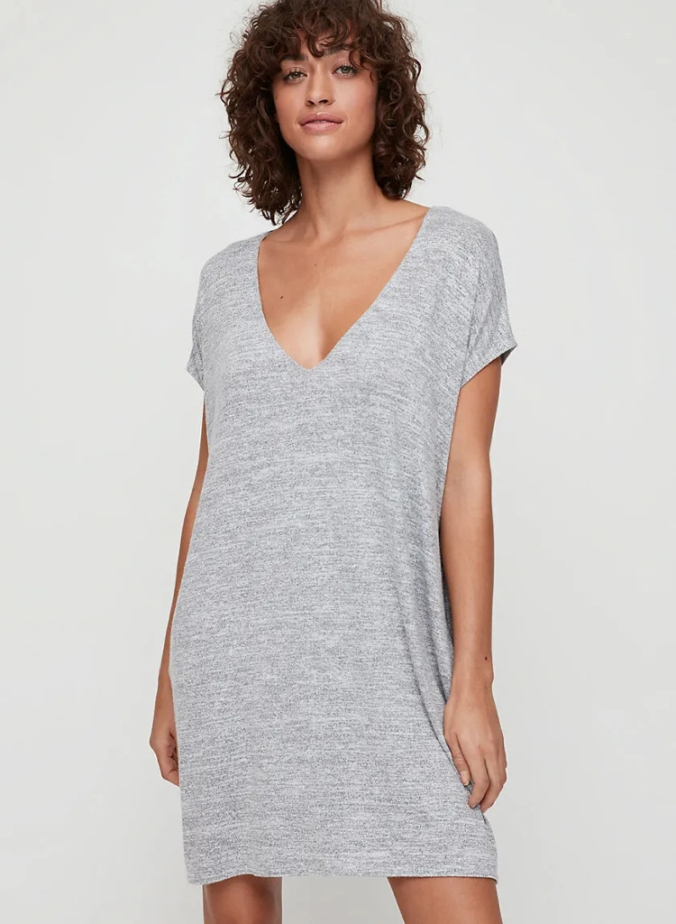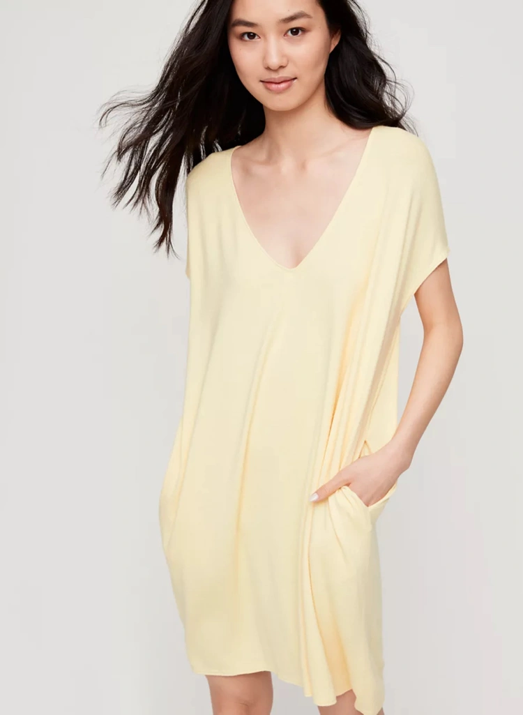 Wilfred Free tee shirt mini dress with pockets in BLACK. Made with Reposa jersey fabric (super soft and stretchy).