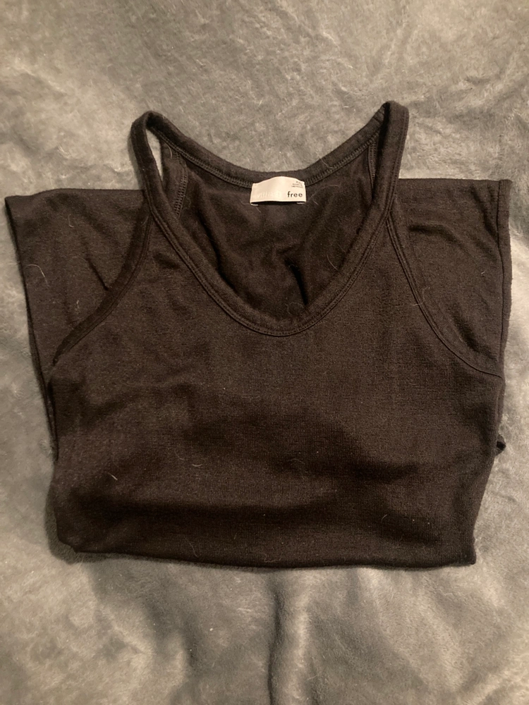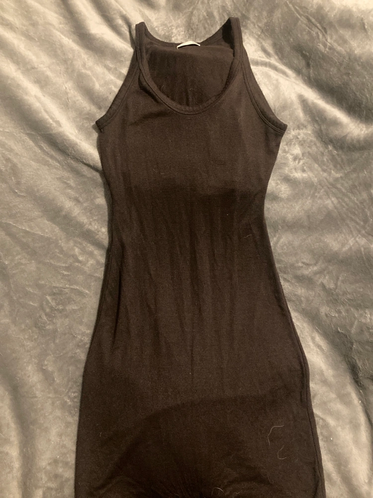 Wilfred Free sleeveless, form fitting, scoop neck midi dress with back cutout in chocolate brown. Made with Reposa jersey (super soft and stretchy fabric).