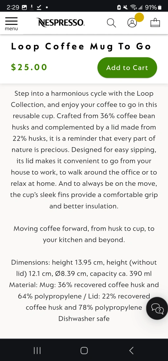 Nespresso Loop To-Go Coffee Cup NEW