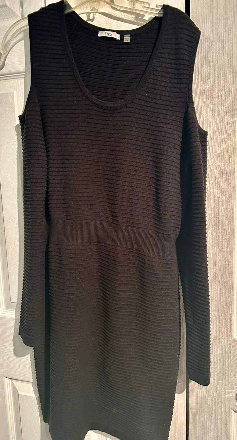 Dex sweater dress , acrylic . Worn a couple of times , no stains, pulls or other signs of wear
