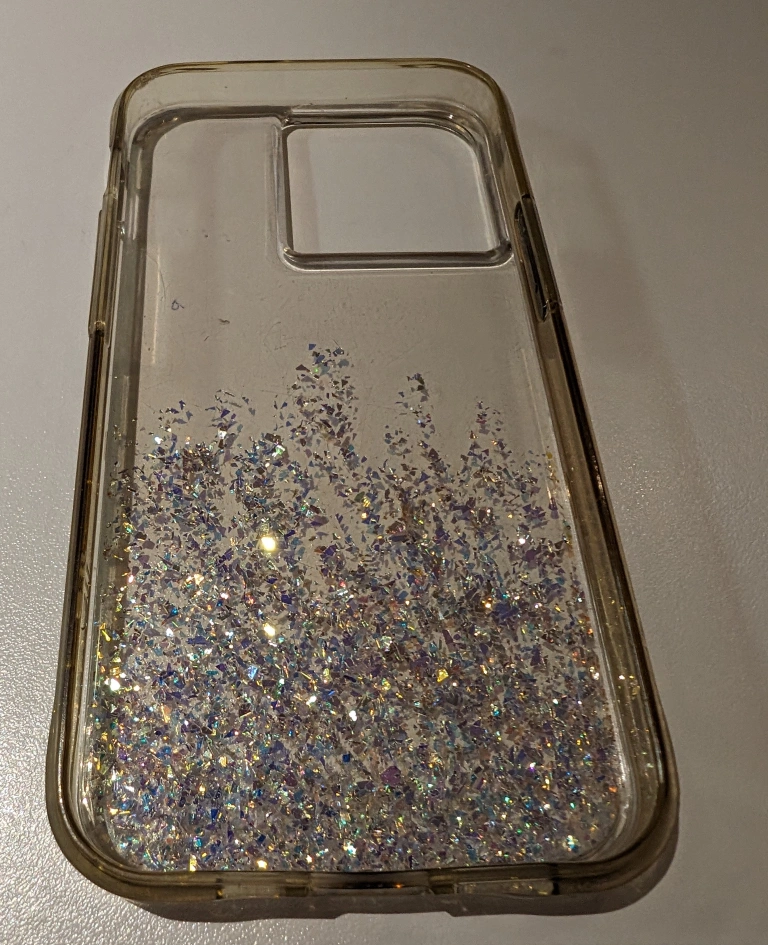 Beautiful sparkle and bling iPhone 13 Pro phone covers. Used, but in good condition. Light scratches , but lost in the sparkle patterns.