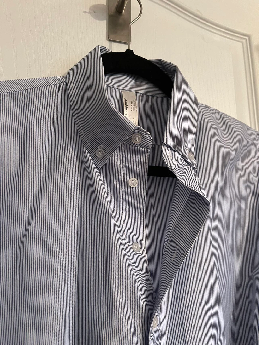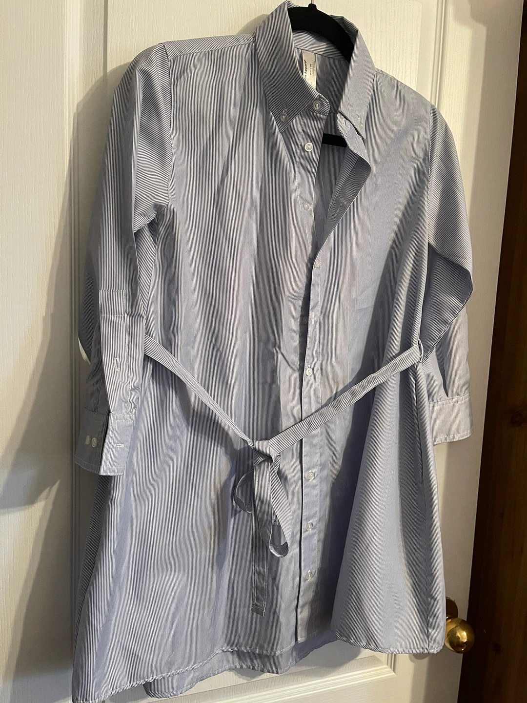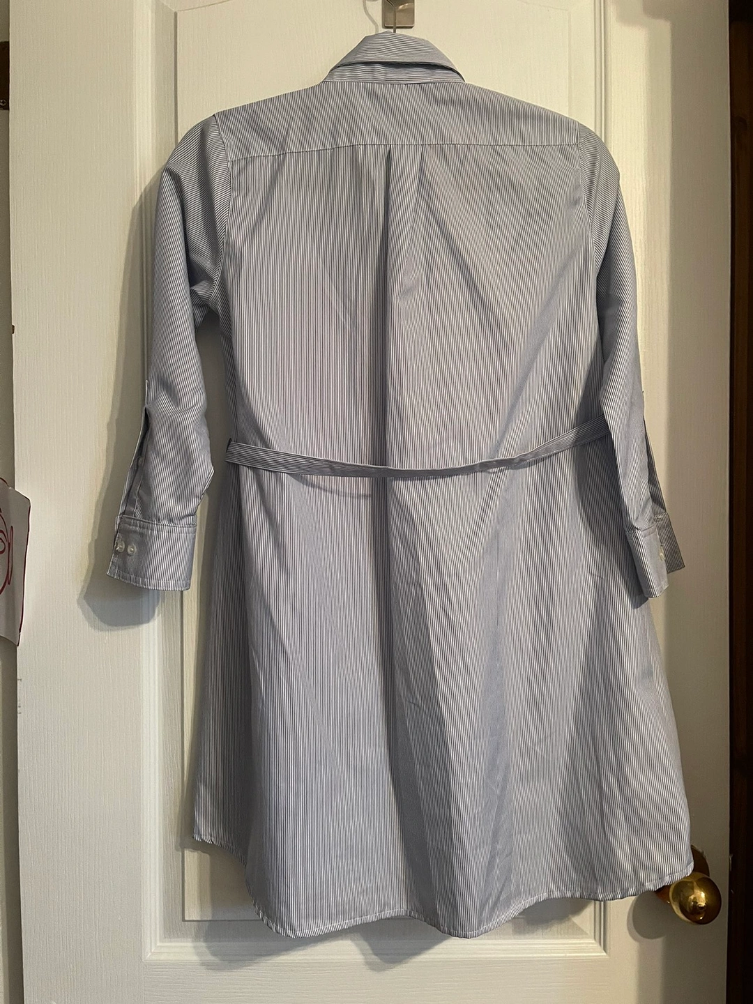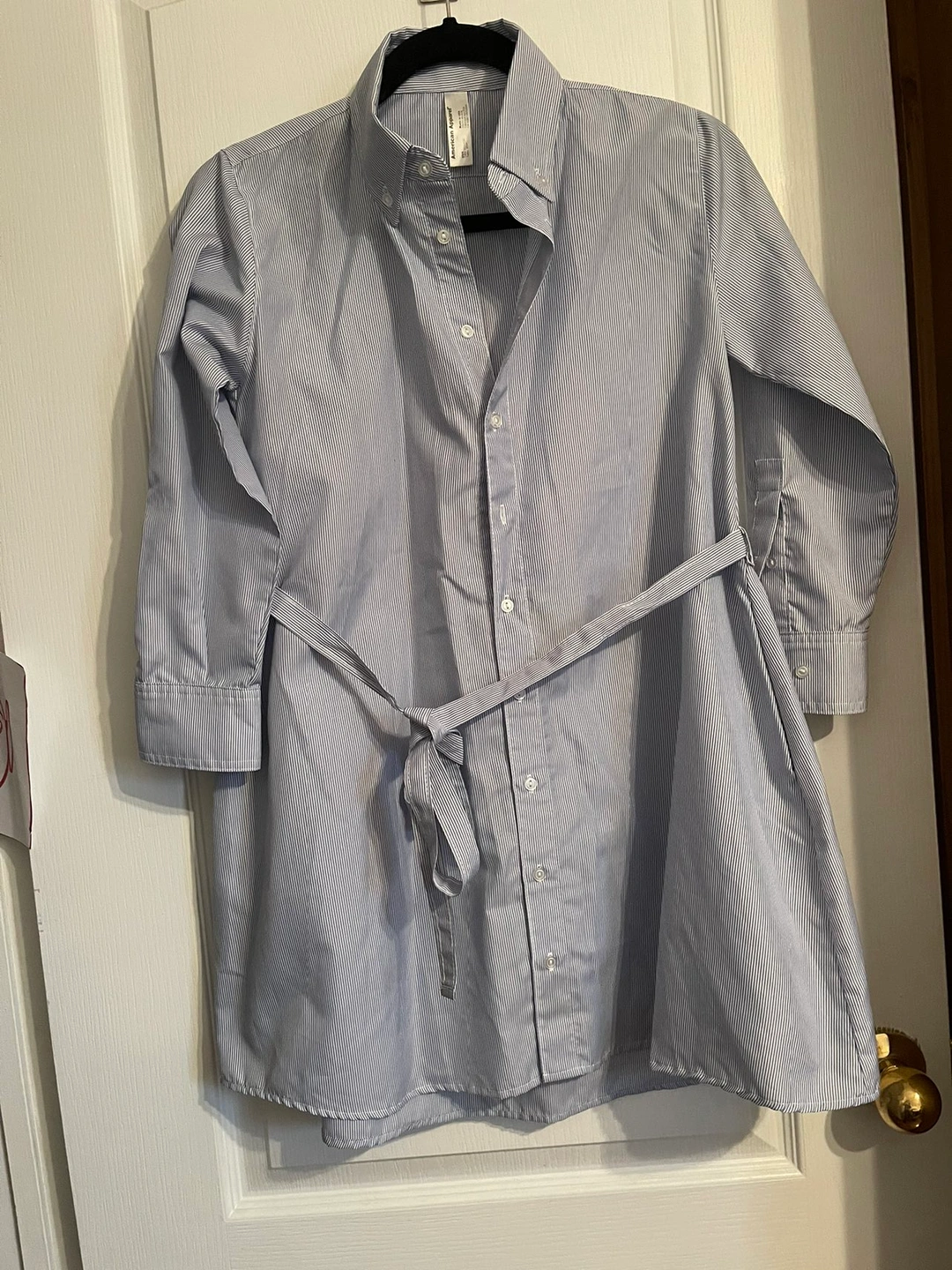 American Apparel blouse, pinstriped, long with belt AND POCKETS!!