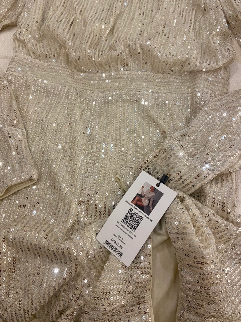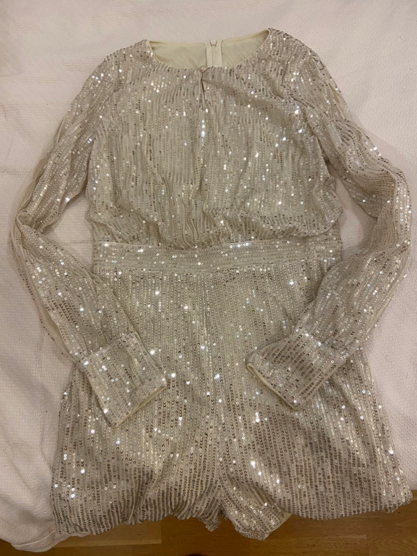 SHEIN Belle Sequin Split Sleeve Romper. Never worn (with tag still). Size small. Link to romper on SHEIN: https://m.shein.com/ca/SEQUIN%20SPLIT%20SLEEVE%20ROMPER-p-2322037-cat-1860.html?ici=&ref=m&rep=dir&ret=mca