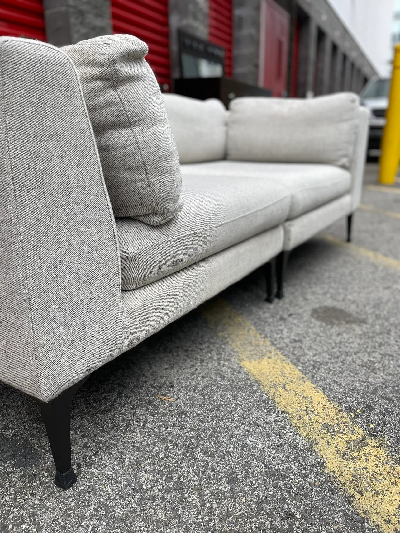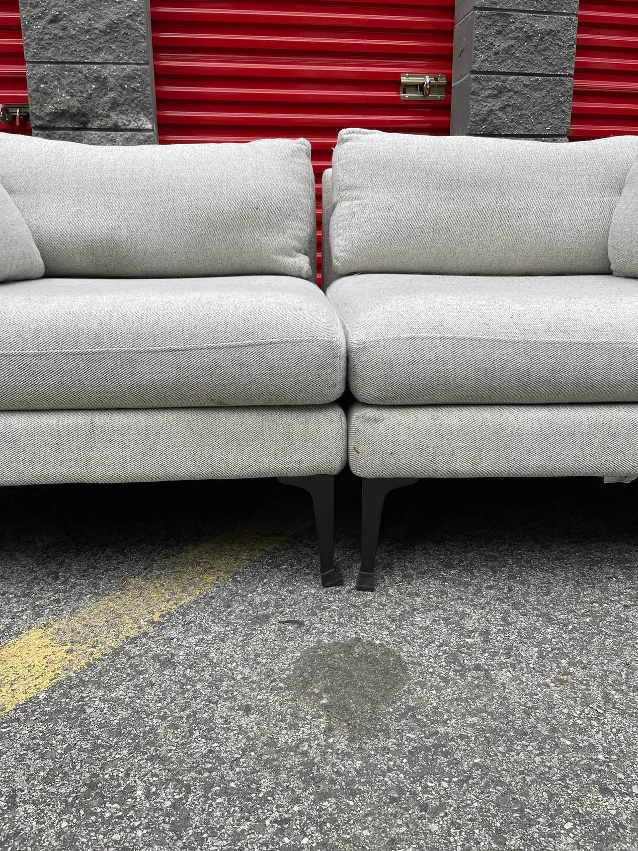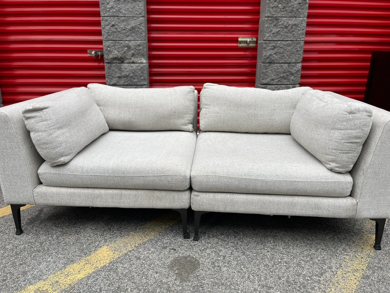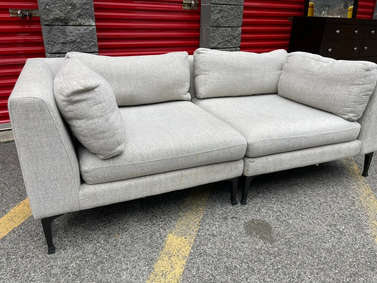 Gray west elm loveseat. Very comfortable and in great condition.just cleaned (check photos for before and after)