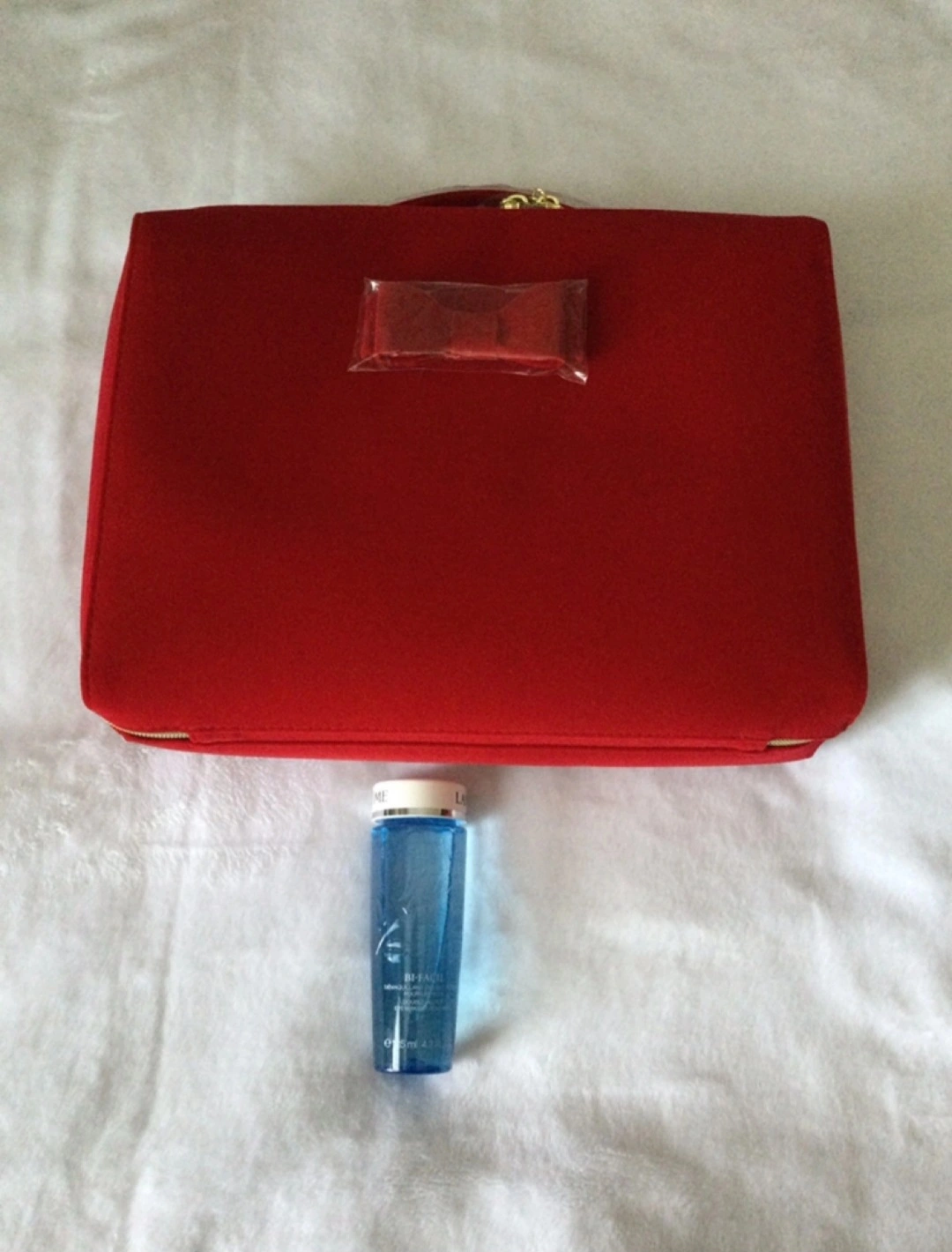 Lancôme Double-Action Eye Makeup Remover with makeup bag