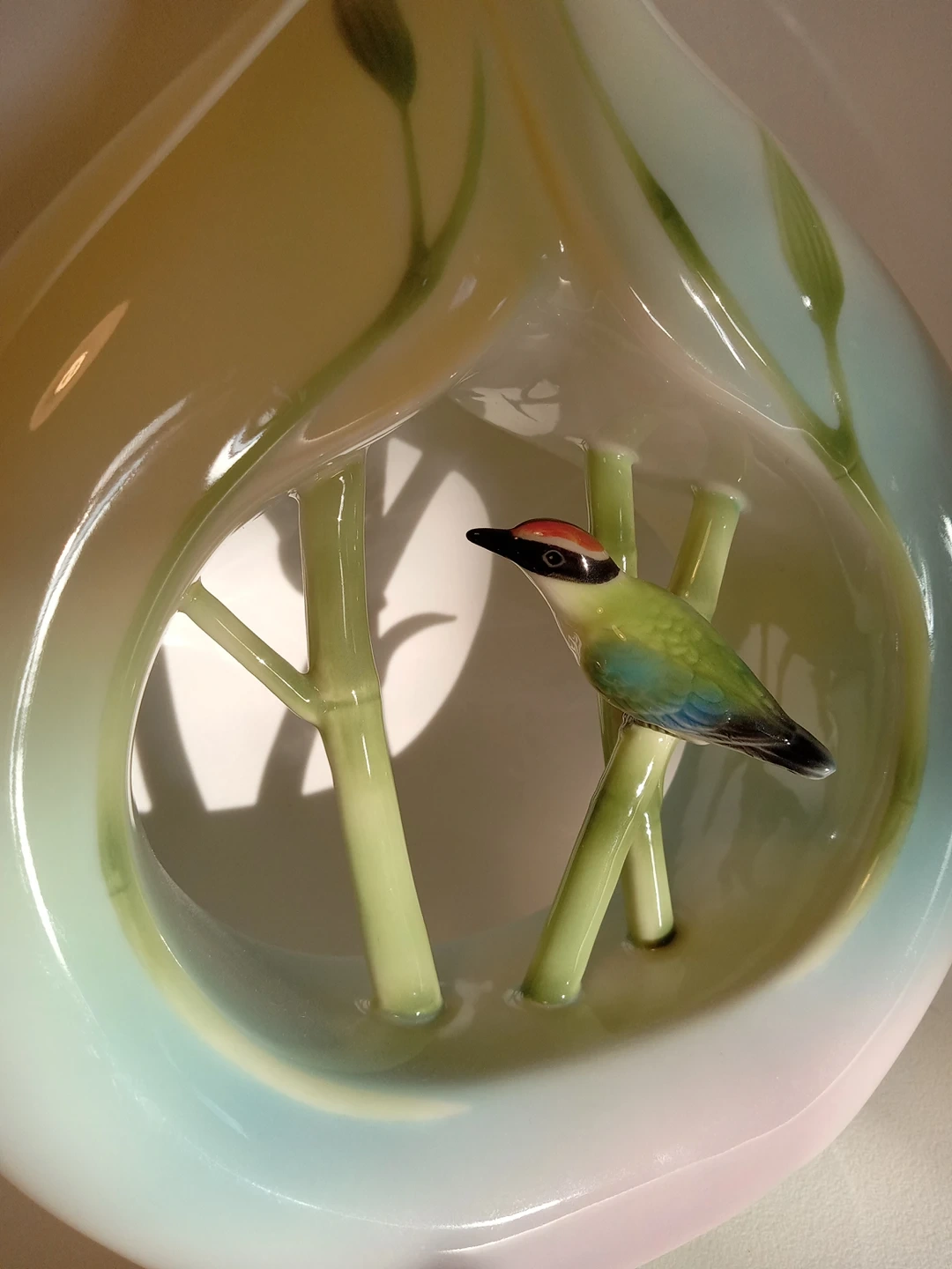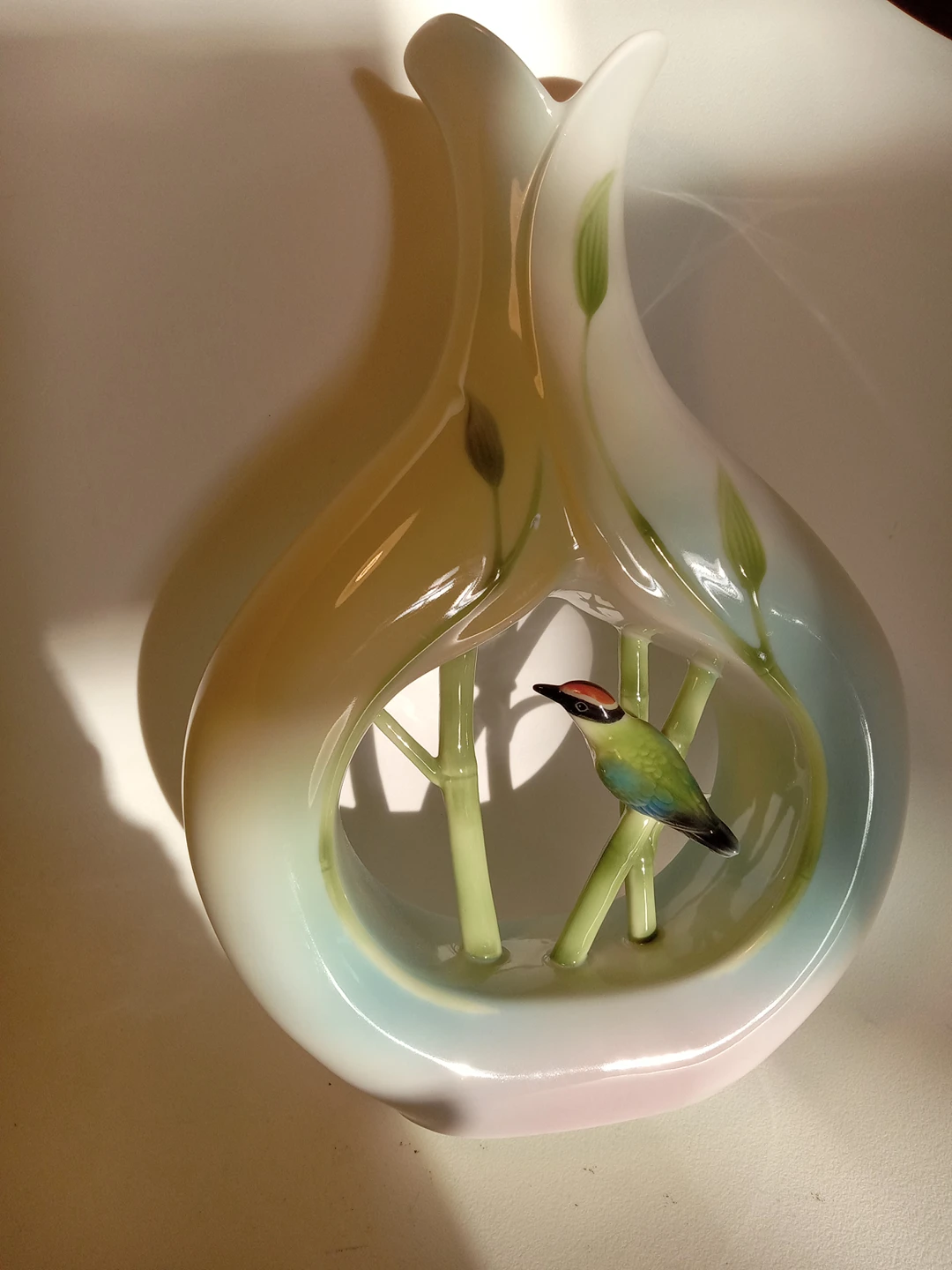 This is a Franz Porcelain Collection "Bamboo Song Bird" Vase. #FZ00572