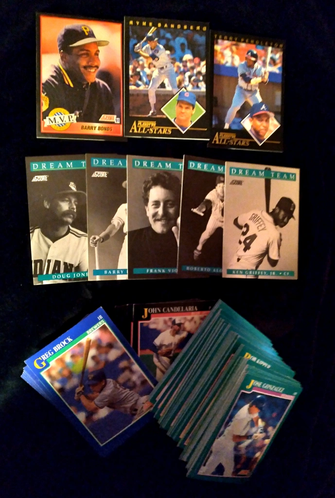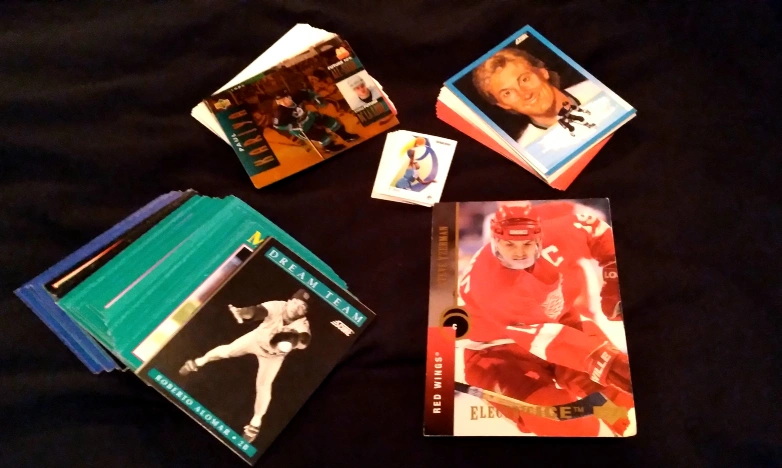 SKYBOX NBA MINI's x7. SCORE NHL '91 x15 (GRETZKY, LEMIEUX, YZERMAN, SUNDIN). UPPER DECK NHL '91, '92, '95 x30 (YZERMAN, BOURQUE, HODGE). SCORE MLB '91 x80 (ALOMAR, LARKIN, BONDS).