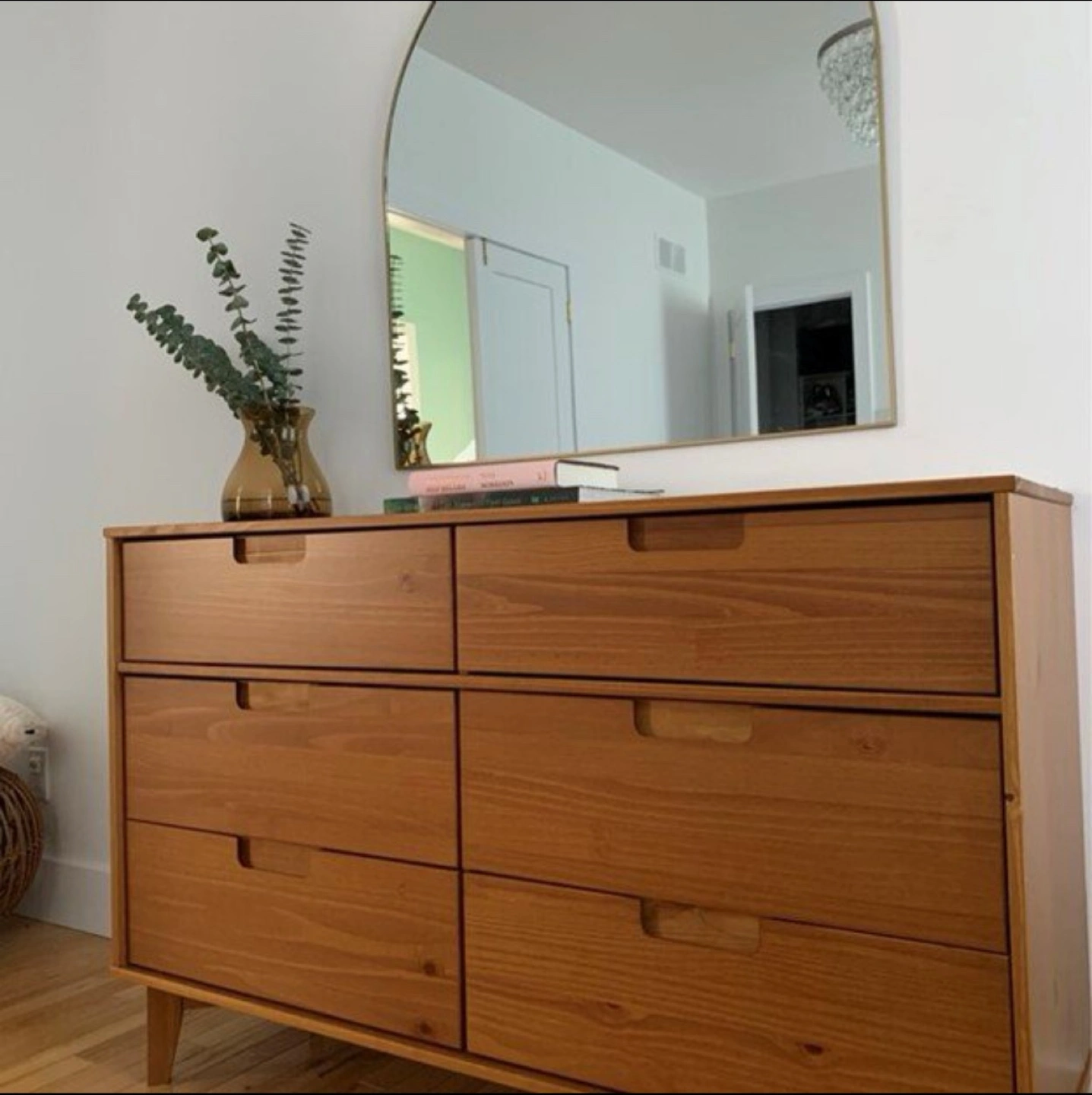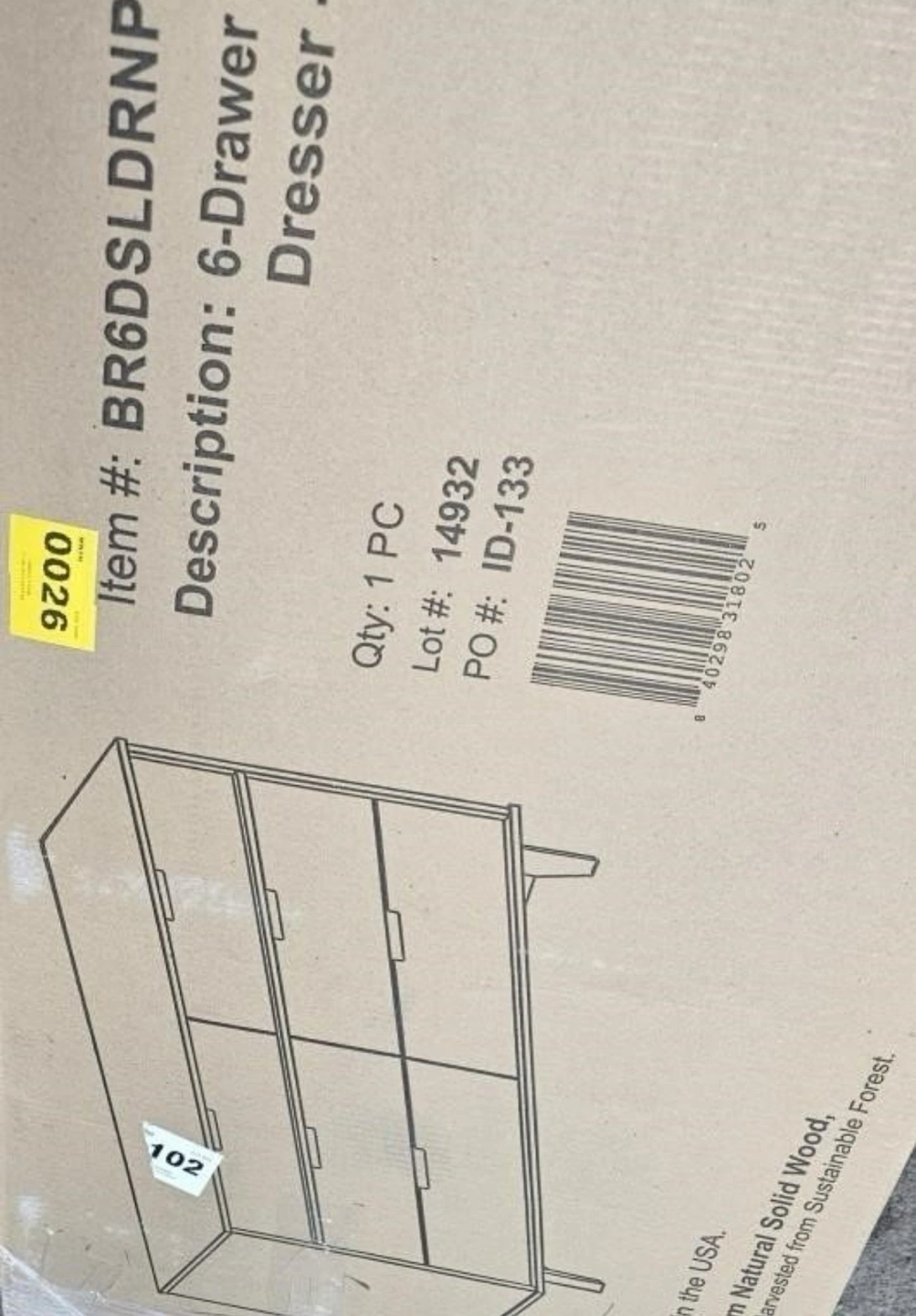 Brand new wooden dresser still in box (open box) but not yet assembled.