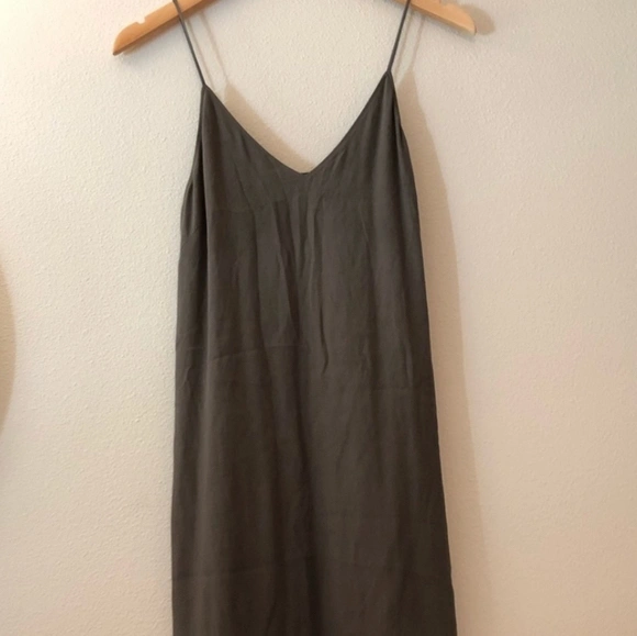 GUC Wilfred mini slip dresses in black, grey and olive green, all XXS.