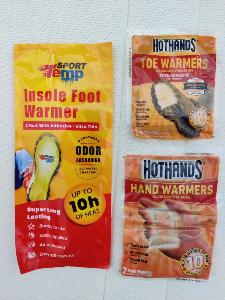 1 pair of each: insole foot warmer, toes warmer, and hands warmer. Price is for the bundle, can also buy individually.