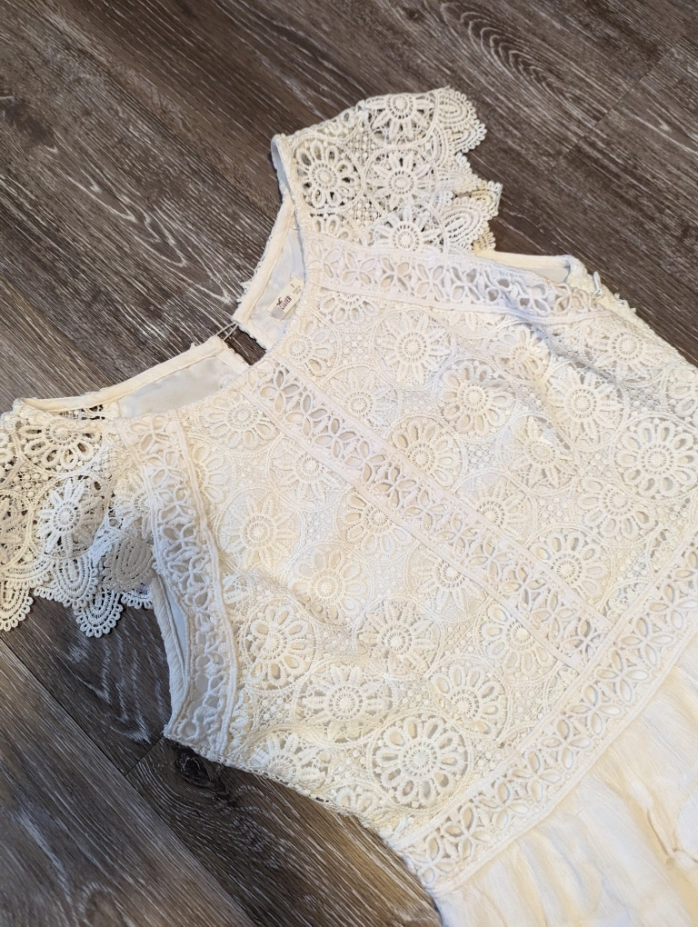 Hollister womens white crochet dress size 3