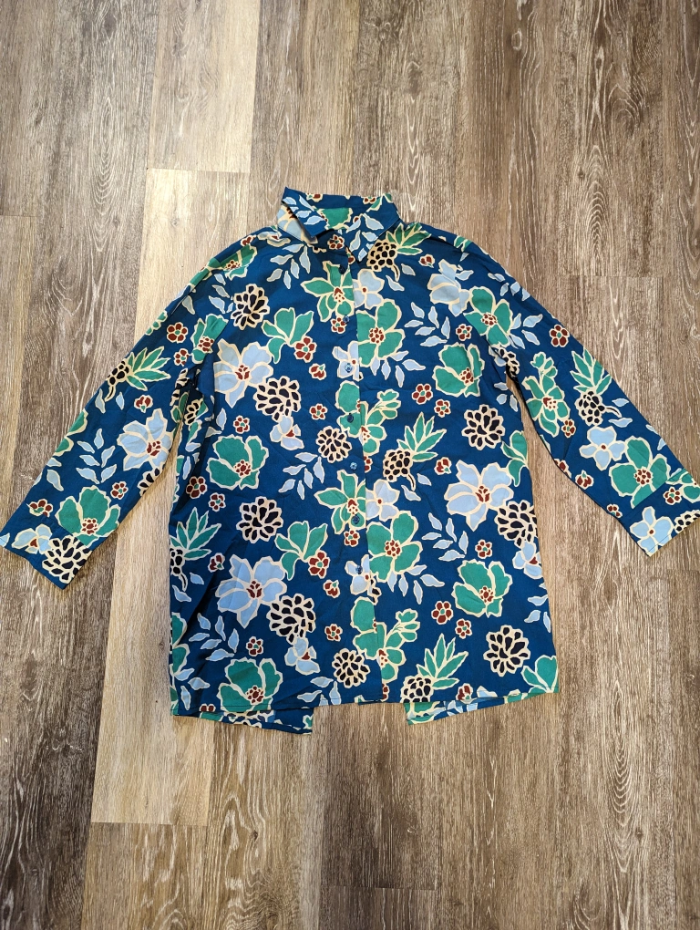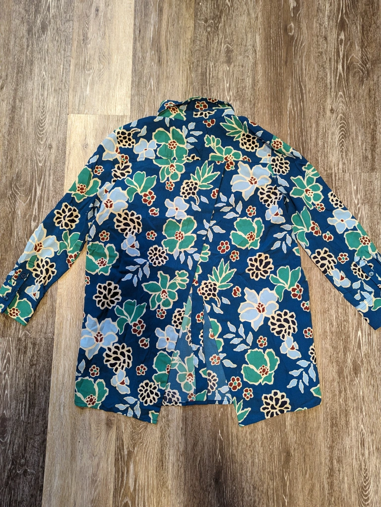 Gorgeous patterned women's dress shirt from Banana Republic. Like new condition, barely worn. Collar and open back detail.
